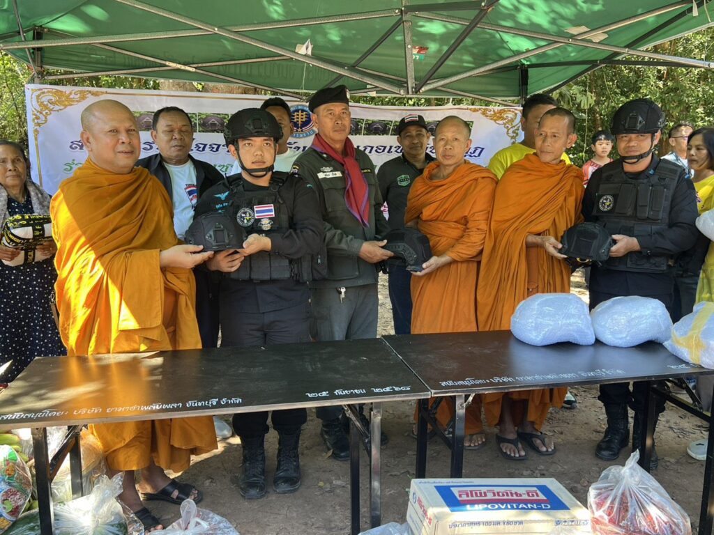 จากนั้นคณะสายบุญก็ได้นำอาหารและผลไม้มามอบให้กับทหารพราน พร้อมกับมอบหมวกเหล็กมูลค่าใบละ 3,000 บาท จำนวน 20 ใบ รวมมูลค่า 60,000 บาท ให้กับทหารพรานในพื้นที่เขาพระวิหาร อีกด้วย