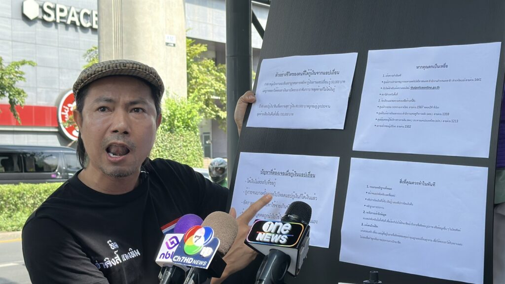 เวลา 10.30 น. วันที่ 21 ต.ค. 68 น.ส.ออย (นามสมมติ) อายุ 50 ปี ข้าราชการระดับ ผอ.ระดับ 8 ได้เข้ายื่นเรื่องขอความเป็นธรรมและขอความช่วยเหลือจาก จ่าคิงส์ แตงทิม สะพานใหม่ อดีต สห.ทอ. และทีมงาน ภายหลังตกเป็นเหยื่อของ “แอปพลิเคชันสินเชื่อเถื่อน” ที่ชื่อว่า “App ทรัพย์พลัส“ 32 App จนเกือบคิดสั้นเพราะความอับอายขายหน้า
