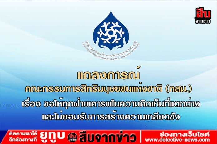 ด้วยเหตุนี้ กสม. จึงขอเน้นย้ำให้ทุกฝ่ายเคารพในความเห็นต่างและศักดิ์ศรีความเป็นมนุษย์ของคนทุกคนที่แม้จะแตกต่างกันด้วยเชื้อชาติ ศาสนา ภาษา หรือสถานะทางสังคมอื่นใด แต่ต่างก็มีคุณค่าในตนเอง ทั้งนี้ ขอให้สังคมร่วมกันสร้างพื้นที่ปลอดภัยในการแสดงความคิดเห็นและการวิพากษ์วิจารณ์อย่างสร้างสรรค์ ไม่ยอมรับการสร้างความเกลียดและการละเมิดศักดิ์ศรีความเป็นมนุษย์ในทุกรูปแบบ