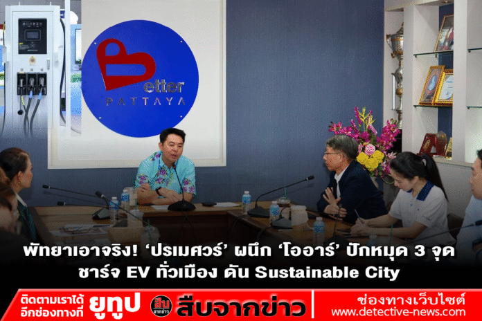 (22 ตุลาคม 2568) นายปรเมศวร์ งามพิเชษฐ์ นายกเมืองพัทยา นั่งเป็นประธานการประชุมพิจารณาจุดติดตั้งสถานีชาร์จรถยนต์ไฟฟ้า (EV Station PluZ) ในพื้นที่เมืองพัทยา ณ ห้องประชุม 131 ศาลาว่าการเมืองพัทยา โดยมีผู้แทนจาก บริษัท ปตท. น้ำมันและการค้าปลีก จำกัด (มหาชน) (โออาร์) พร้อมด้วยหัวหน้าส่วนราชการที่เกี่ยวข้องเข้าร่วมประชุมอย่างพร้อมเพรียง