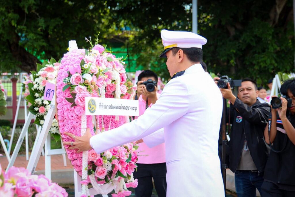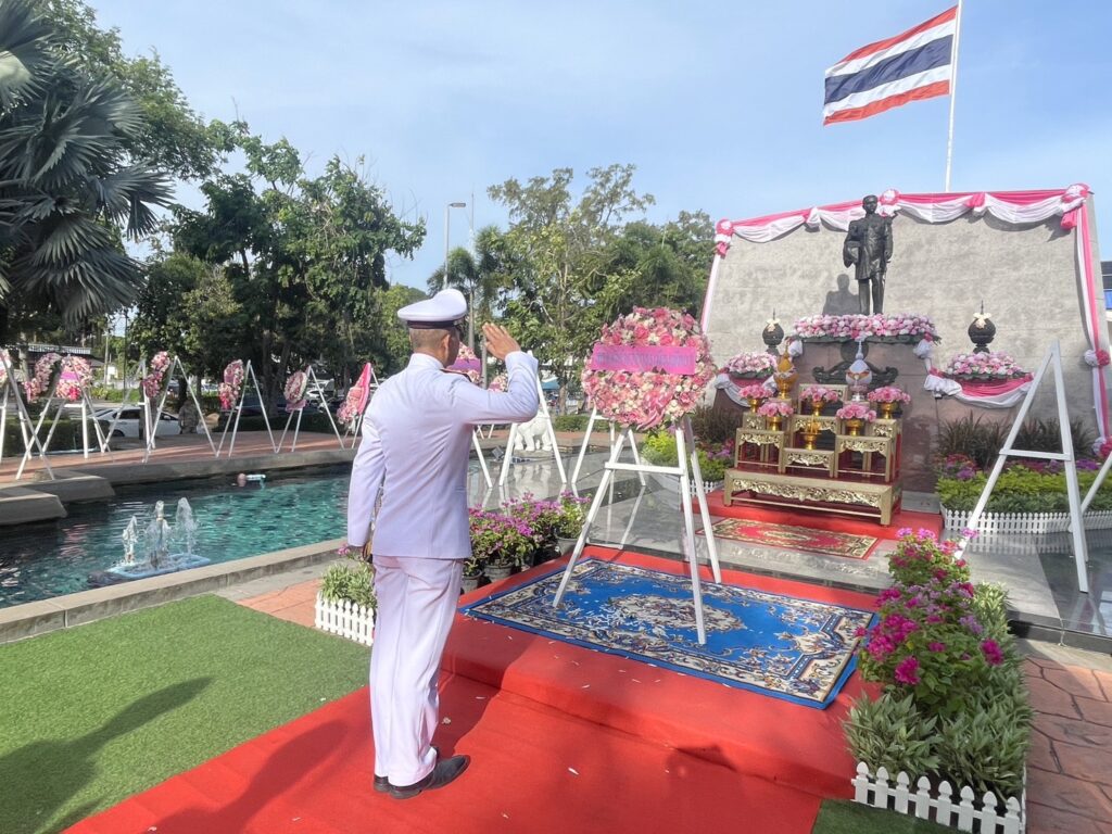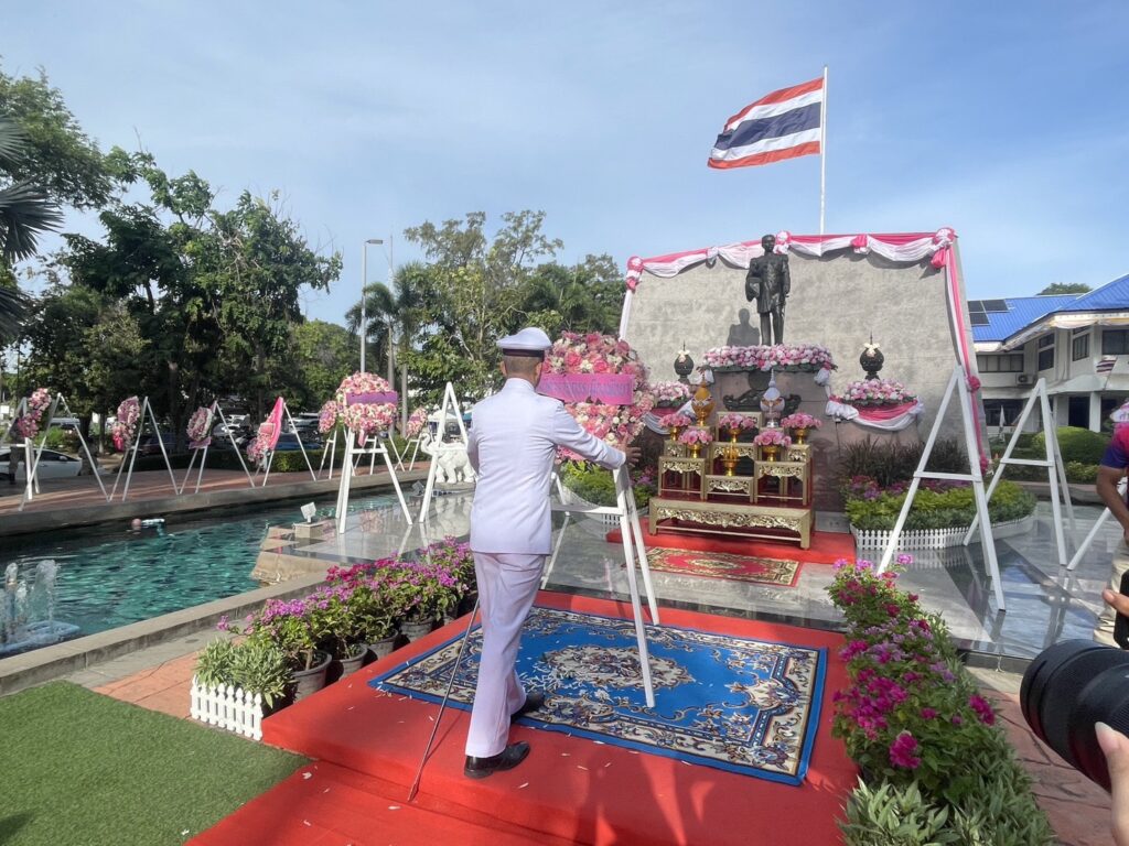 พิธีดังกล่าวมี นายพัชรพัชร์ ศรีธัญญนนท์ นายอำเภอบางละมุง เป็นประธานในพิธี โดยมี พ.ต.อ.เอนก สระทองอยู่ ผู้กำกับการสถานีตำรวจภูธรเมืองพัทยา เข้าร่วมวางพวงมาลาพร้อมหัวหน้าส่วนราชการ องค์กรปกครองส่วนท้องถิ่น หน่วยงานภาครัฐ ภาคเอกชน และประชาชนจิตอาสาจำนวนมาก