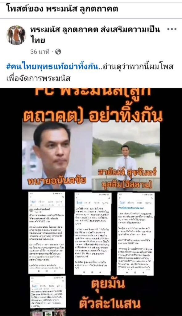 พร้อมแนบภาพของ ทนายอนันต์ชัย และ นายสายัณห์ ประกอบข้อความ “ตุยมันตัวละ 1 แสน ติดต่อมาได้” ซึ่งถือเป็นการข่มขู่และยุยงให้เกิดการกระทำรุนแรง