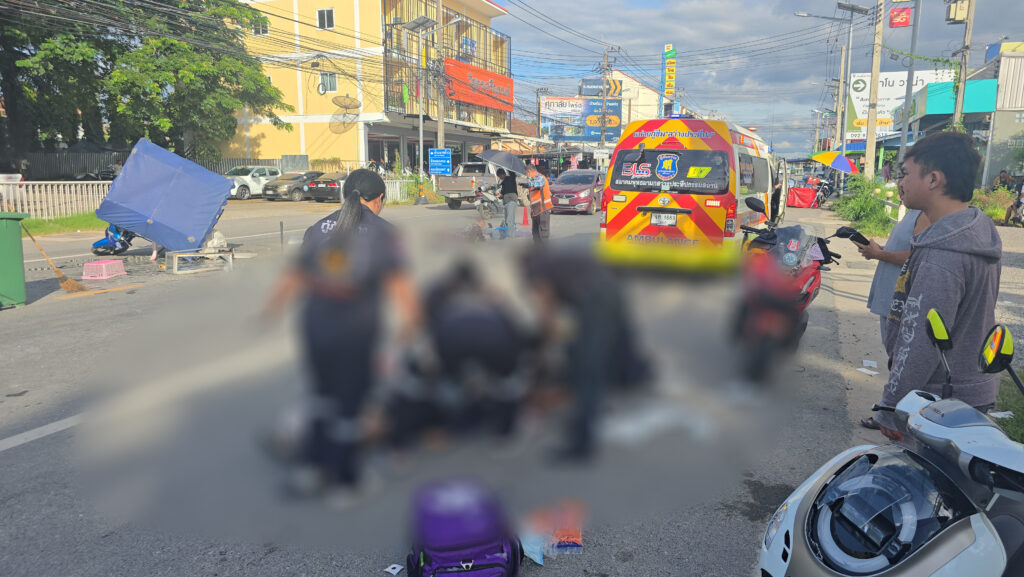 เมื่อเวลา 15.45 น. วันที่ 23 ตุลาคม 2568 ศูนย์วิทยุหน่วยกู้ภัยสว่างประทีปศรีราชา จังหวัดชลบุรี รับแจ้งอุบัติเหตุรถจักรยานยนต์ชนกับรถจักรยานยนต์พ่วงข้างขายไอศกรีม มีผู้บาดเจ็บหลายราย เหตุเกิดบนถนนสายศรีราชา–หนองยายบู่ หน้าร้านติดมันส์หมูกระทะ หมู่ 1 ตำบลหนองขาม อำเภอศรีราชา จังหวัดชลบุรี เจ้าหน้าที่กู้ภัยพร้อมรถพยาบาลโรงพยาบาลวิภาราม แหลมฉบัง และตำรวจ สภ.ศรีราชา รุดตรวจสอบ