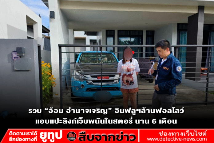 ตำรวจไซเบอร์เข้าจับกุม “อ้อม อำนาจเจริญ” อินฟลูเอนเซอร์หญิงชื่อดัง เจ้าของเพจคำคมยอดผู้ติดตามกว่า 1.5 ล้านราย หลังตรวจพบพฤติกรรมลักลอบแปะลิงก์ชักชวนเล่นพนันออนไลน์ในสตอรี่เฟซบุ๊กอย่างต่อเนื่อง
