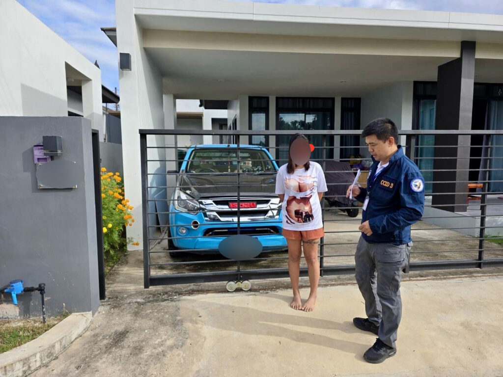 เจ้าหน้าที่ได้ขออนุมัติหมายค้นจากศาลจังหวัดมุกดาหาร ก่อนนำกำลังเข้าตรวจค้นบ้านเป้าหมายภายในพื้นที่หมู่ 16 ตำบลคำอาฮวน อำเภอเมืองมุกดาหาร พบ น.ส.จุฑาภรณ์ หรือ “อ้อม” อายุ 26 ปี พร้อมของกลางโทรศัพท์มือถือที่ใช้ในการกระทำความผิด