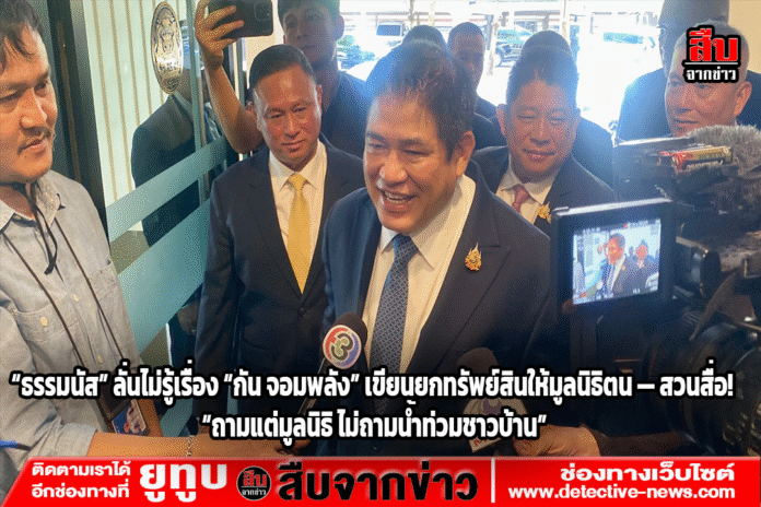 “ธรรมนัส” แจงปัดเอี่ยวกรณี “กัน จอมพลัง” ระบุชื่อมูลนิธิธรรมนัสฯ เป็นผู้รับทรัพย์สินหากมูลนิธิตนเลิกล้ม ย้ำไม่รู้เรื่อง-ไม่เคยถูกถามตอนจัดตั้ง ชี้ “กัน” มือใหม่หัดขับ ทำอะไรไม่ค่อยคิด พร้อมเหน็บสื่อ ถามแต่มูลนิธิ ไม่เคยถามเรื่องความเดือดร้อนของประชาชนจากน้ำท่วม