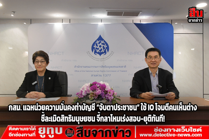 กสม. เปิดผลสอบชัด หน่วยงานความมั่นคงถูกกล่าวหาจัดทำบัญชีรายชื่อบุคคลและองค์กรที่เห็นต่างทางการเมือง พร้อมใช้ปฏิบัติการข่าวสาร (IO) โจมตีผ่านสื่อออนไลน์ ชี้เป็นการละเมิดสิทธิมนุษยชนขั้นร้ายแรง แนะกระทรวงกลาโหมตรวจสอบเร่งด่วน พร้อมยุติการเฝ้าระวัง-ติดตามความเคลื่อนไหวประชาชนโดยไร้ฐานกฎหมาย