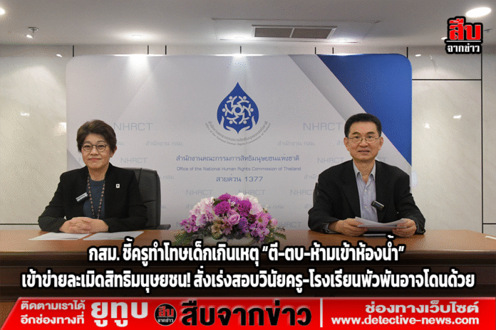 นางสาวหรรษา หอมหวล เลขาธิการคณะกรรมการสิทธิมนุษยชนแห่งชาติ เปิดเผยว่า เมื่อเดือนพฤษภาคม 2568 กสม. ได้รับเรื่องร้องเรียนจากผู้ปกครองรายหนึ่ง ระบุว่าบุตรซึ่งเป็นนักเรียนชั้นประถมศึกษาปีที่ 5 โรงเรียนแห่งหนึ่งในจังหวัดชัยภูมิ ถูกครูประจำชั้นทำโทษเกินกว่าเหตุ ทั้งตบ ตีท้ายทอย และใช้ไม้เรียวฟาดหลายครั้ง รวมถึงห้ามไม่ให้ออกจากห้องเรียนไปเข้าห้องน้ำนอกเวลาที่กำหนด ส่งผลให้เด็กต้องกลั้นปัสสาวะบ่อยครั้งจนกระทบสุขภาพ