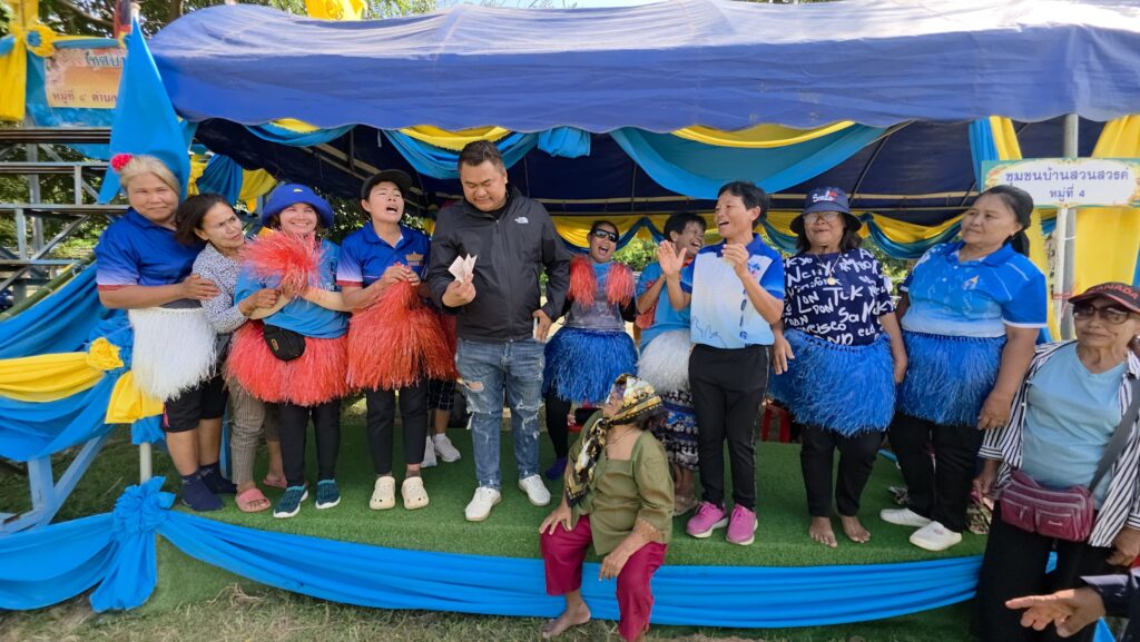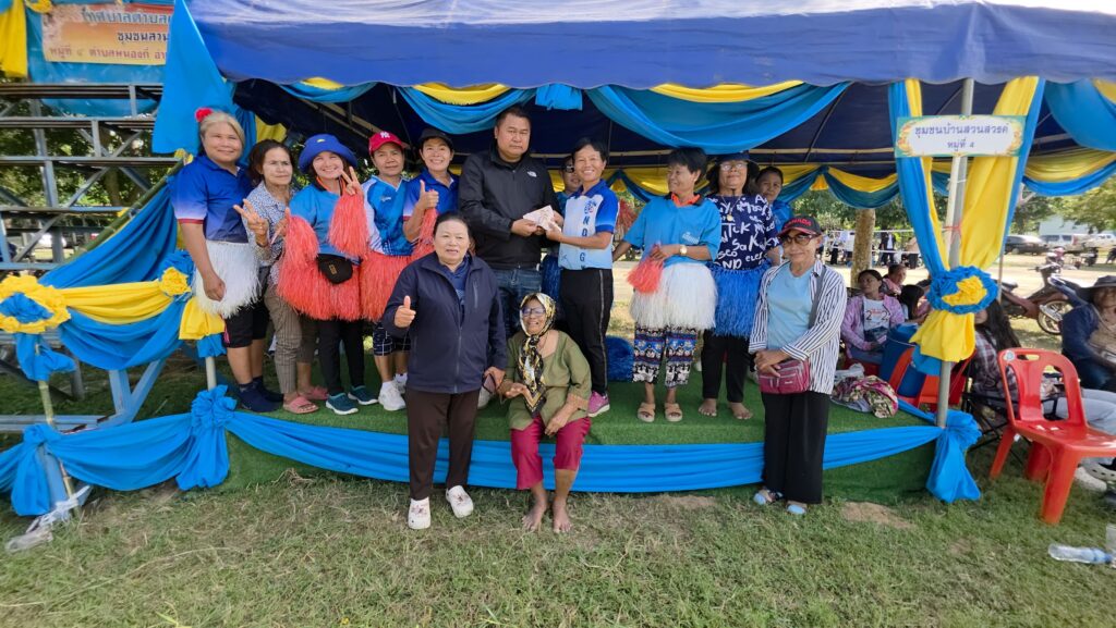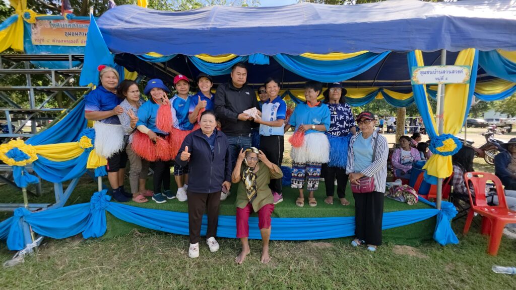 ผลการแข่งขันฟุตบอลพ่อบ้าน หมู่ 4 บ้านสวนสวรรค์ เอาชนะ หมู่ 5 บ้านแสนสุข 3–0 ประตู คว้าเงินรางวัล 6,000 บาท จาก “เสี่ยต๋อง หนองกี่”