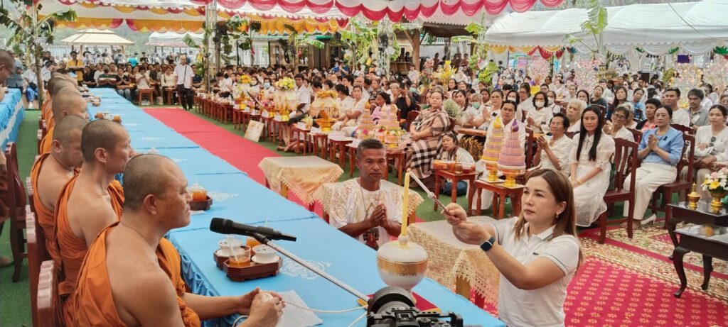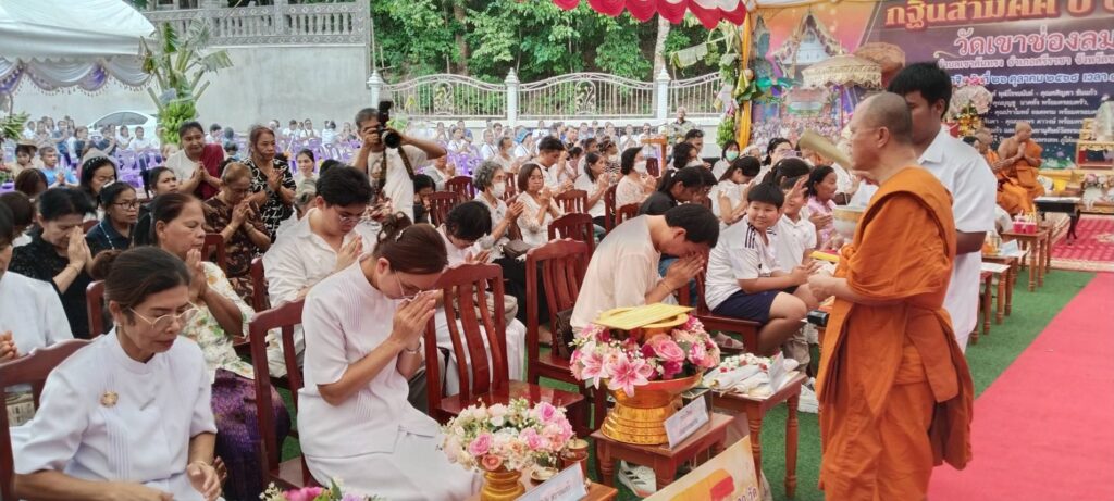 โดยมี พระครูภาวนาวชิราลังการ วิ. เจ้าอาวาสวัดเขาช่องลม เป็นประธานฝ่ายสงฆ์ พร้อมด้วยคณะประธานอุปถัมภ์ อาทิ คุณณิชใจ ปิยะนันท์, คุณธันยนันท์ พุฒิโรจนันท์, คุณศศิญดา ขันแก้ว, คุณนภา-คุณบุญชู นาคาทั่ง, คุณสุพัตรตา-คุณปราโมทย์ ยอดพรม และคุณนรินทร์ จินตา-คุณนภาพร ดาวงษ์ พร้อมครอบครัว ท่ามกลางผู้นำท้องถิ่น ข้าราชการ นักการเมือง พ่อค้า และนักธุรกิจที่มาร่วมบุญจำนวนมาก