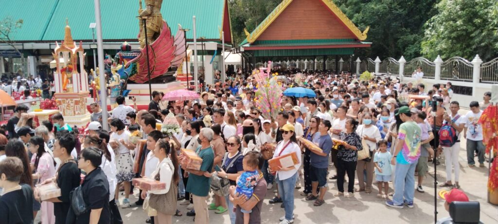 คลื่นมหาชนนับพันคนหลั่งไหลสู่วัดเขาช่องลม ศรีราชา ร่วมทอดกฐินสามัคคีด้วยพลังศรัทธา “ท้าวเวสสุวรรณทรงราหู (ท่านทองล้น) ยักษ์ 174 ล้าน” ได้ยอดบุญกว่า 2.2 ล้านบาท โดยการทำบุญครั้งใหญ่นี้ พุทธศาสนิกชนต่างตั้งจิตน้อมถวายเป็นพระราชกุศลแด่สมเด็จพระพันปีหลวง ที่เพิ่งเสด็จสวรรคต