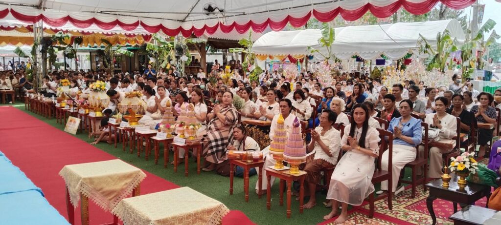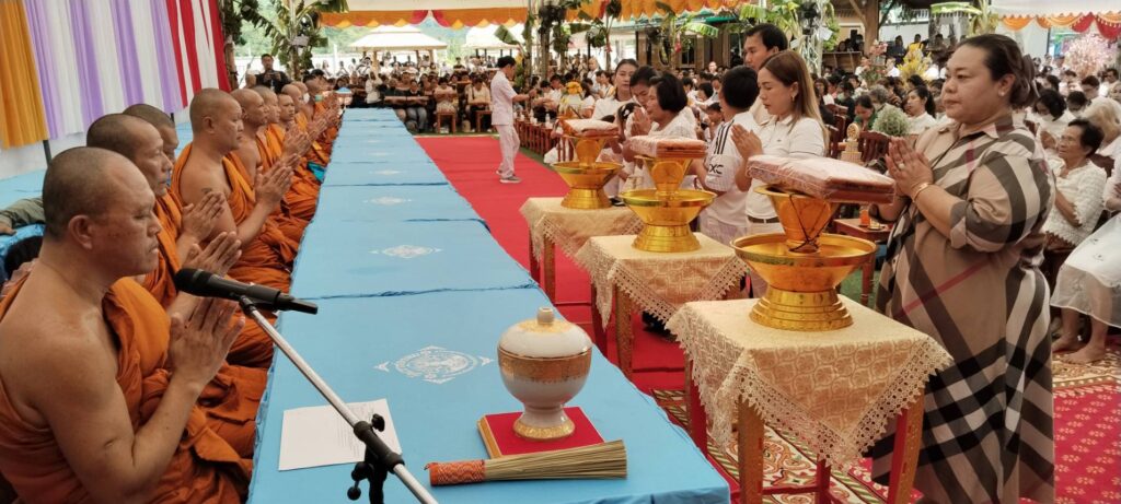 พิธีถวายผ้าไตรกฐินได้จัดขึ้น ณ เต็นท์ข้างอุโบสถ ท่ามกลางบรรยากาศที่อิ่มบุญอิ่มใจกันถ้วนหน้า ซึ่งการทอดกฐินสามัคคีครั้งนี้ ถือเป็นการอนุรักษ์สืบสานประเพณีอันดีงามและสร้างความสามัคคีในหมู่พุทธศาสนิกชน