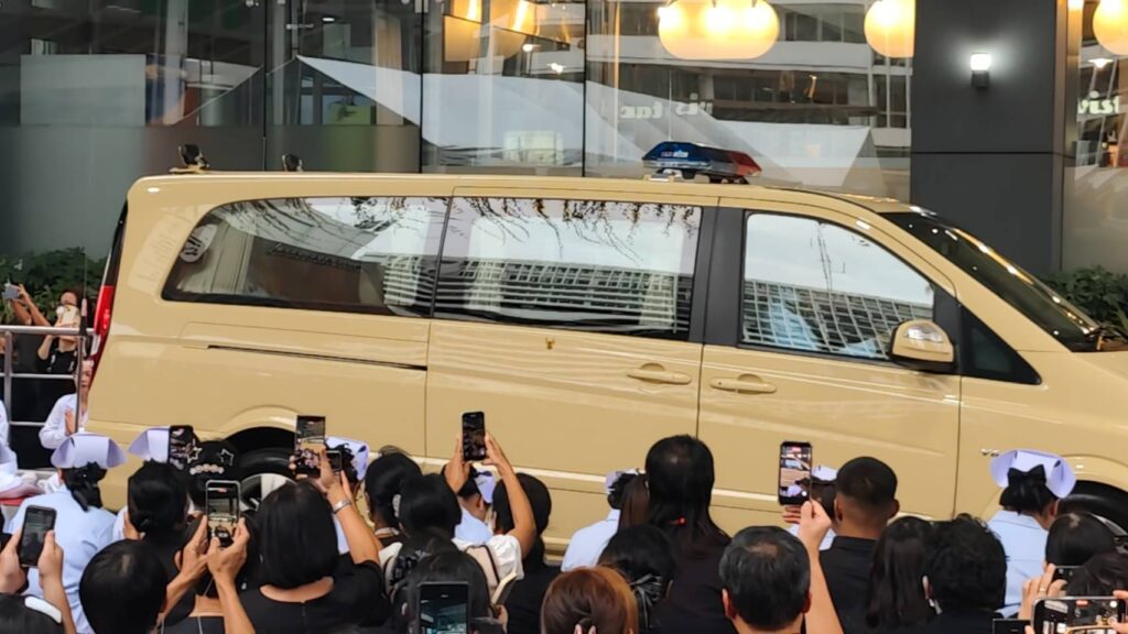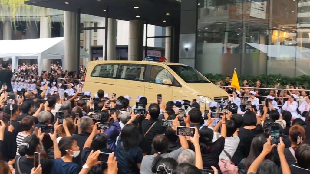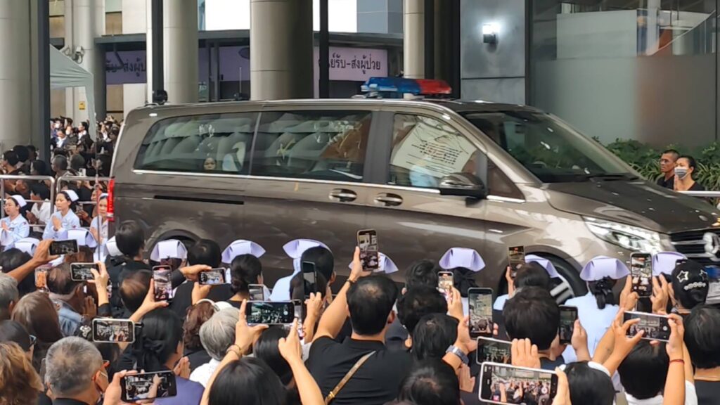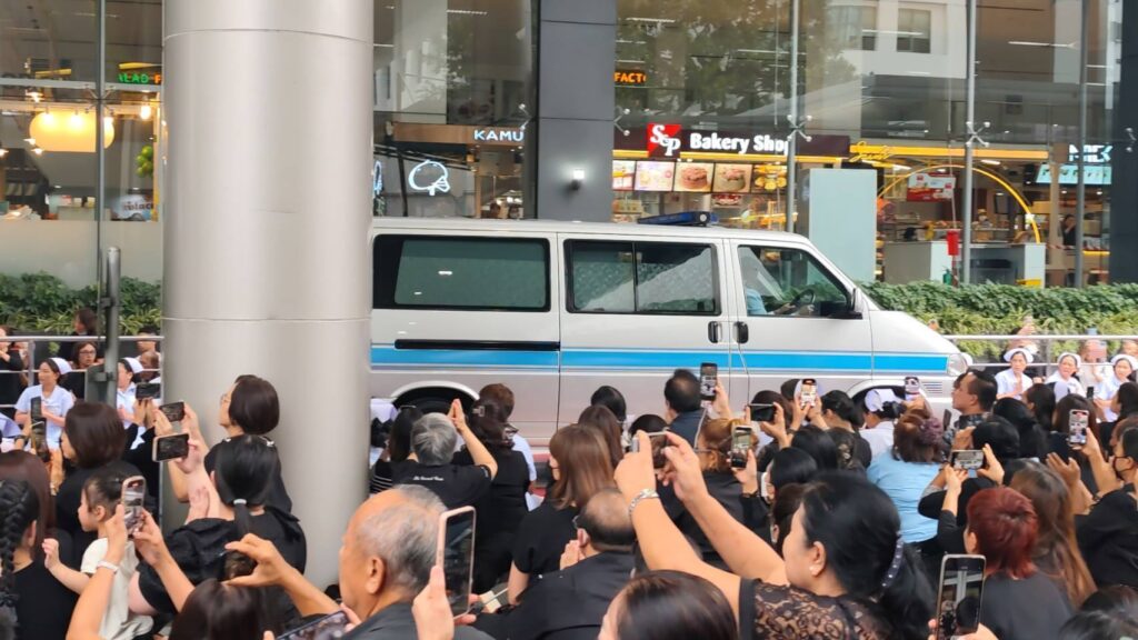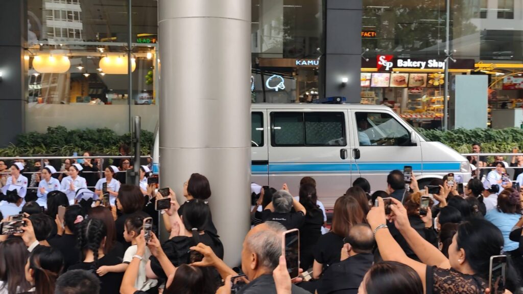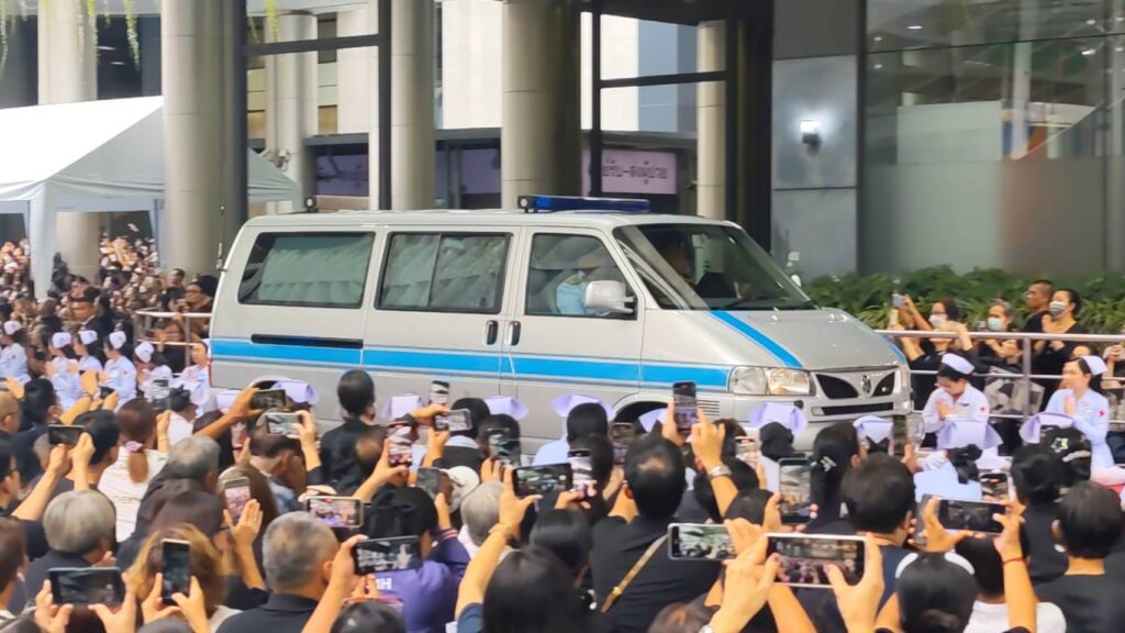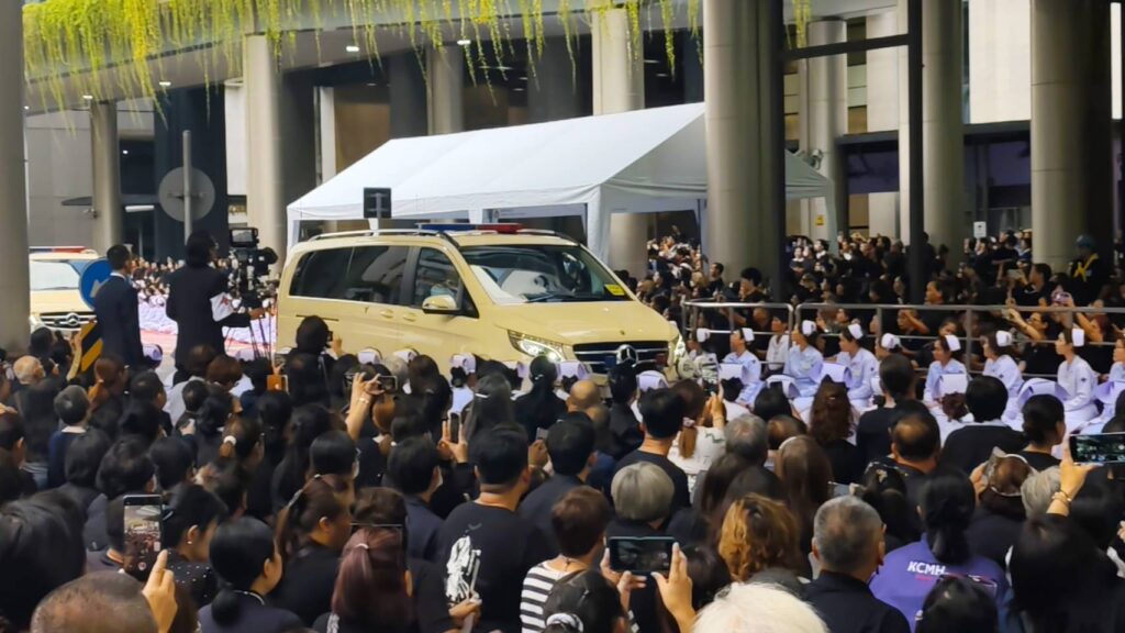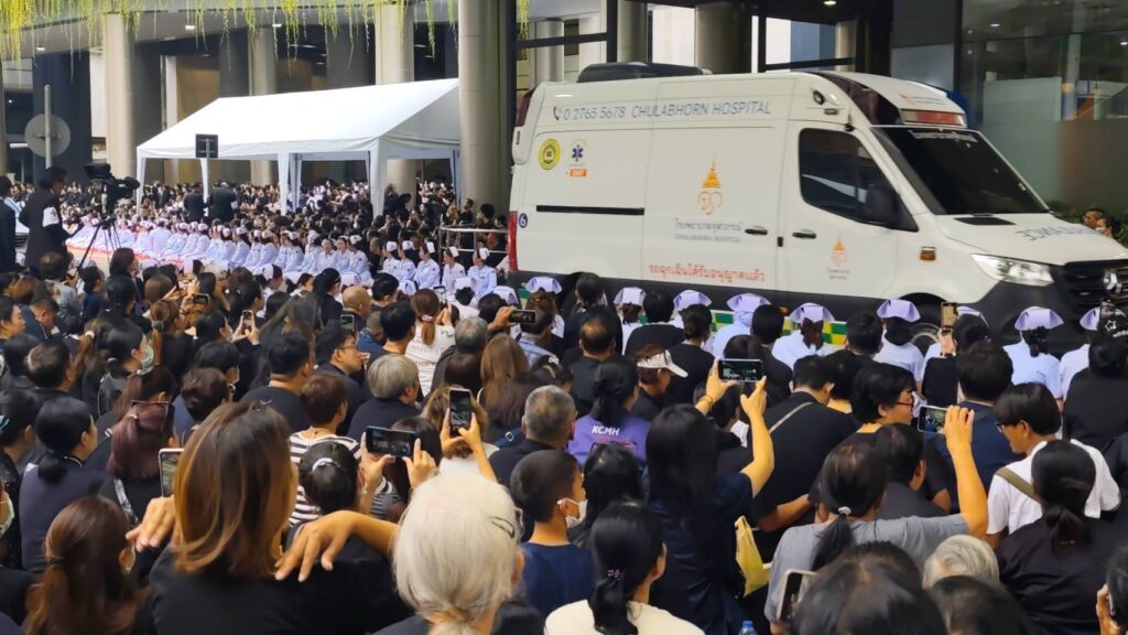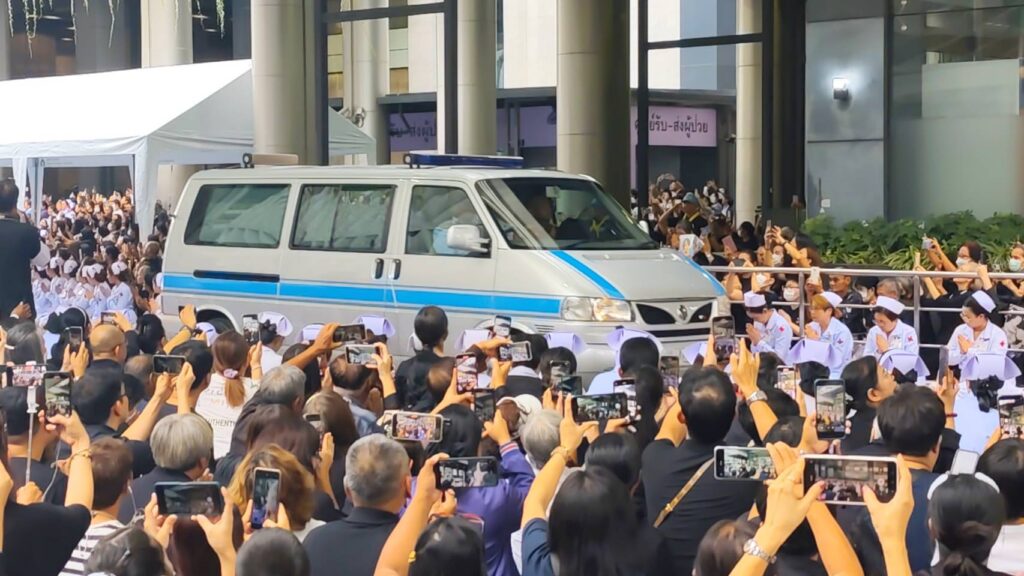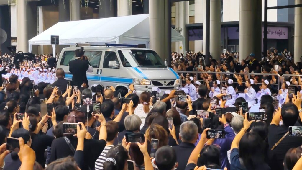 พสกนิกรถวายความอาลัย น้อมส่งเสด็จขบวนพระบรมศพ สมเด็จพระนางเจ้าสิริกิติ์ พระบรมราชินีนาถ พระบรมราชชนนีพันปีหลวง ที่โรงพยาบาลจุฬาลงกรณ์ สภากาชาดไทย