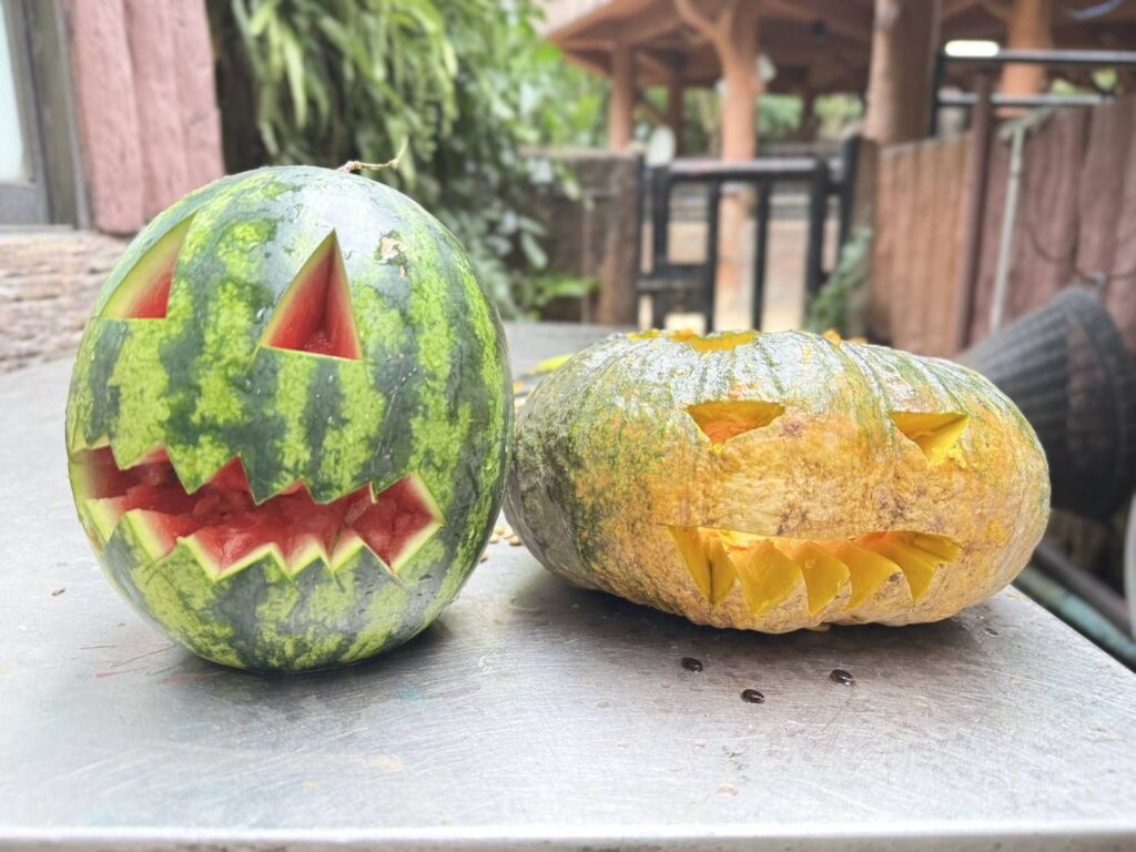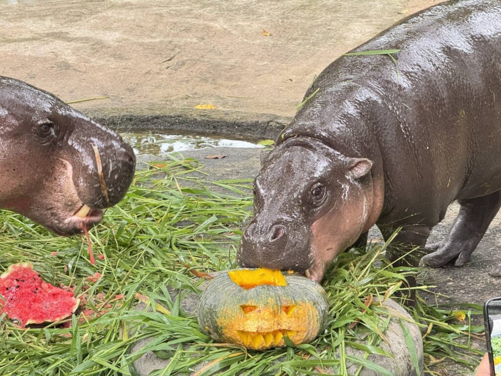 ไม่เพียงแต่นักท่องเที่ยวเท่านั้นที่ได้ร่วมสนุก เพราะเหล่าสัตว์ขวัญใจของสวนสัตว์อย่าง “ฮิปโปหมูเด้ง” และ “คาปิบาร่าหนูยักษ์” ก็จะได้ของขวัญพิเศษในวันฮาโลวีนด้วยเช่นกัน! โดยเจ้าหน้าที่ได้เตรียม ผลไม้ฟักทองและแตงโมแกะสลักรูปผี มามอบให้ร่วมฉลองอย่างน่ารัก