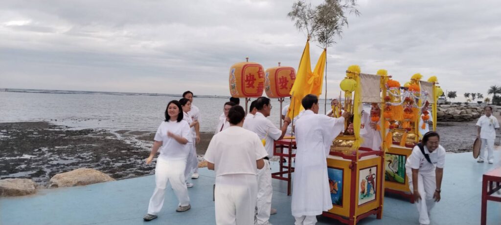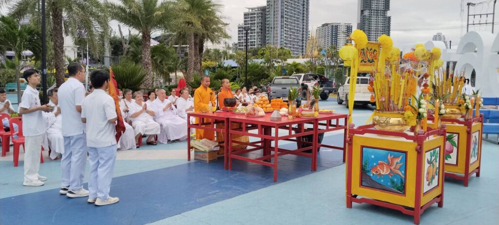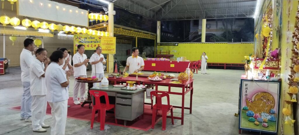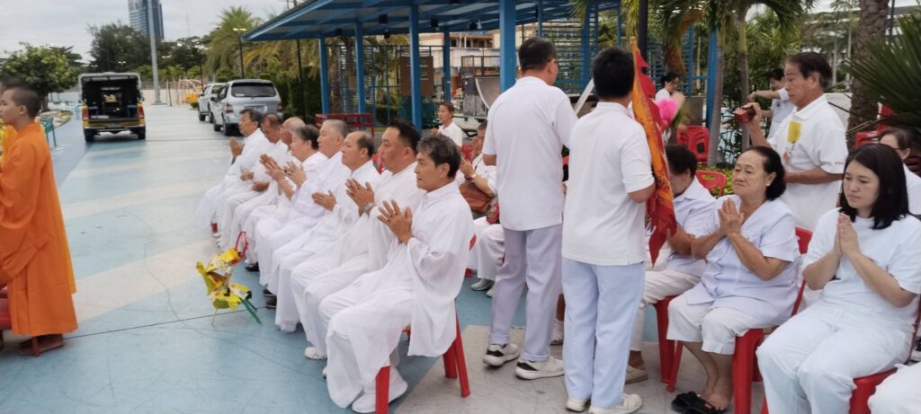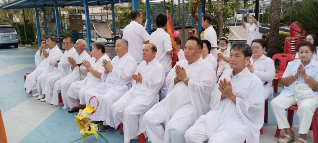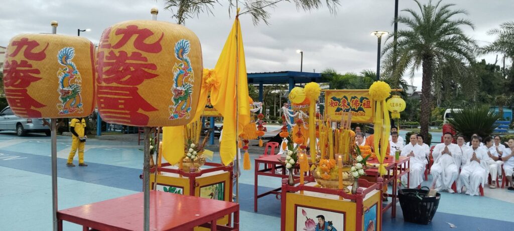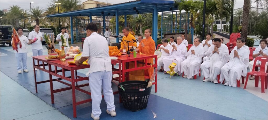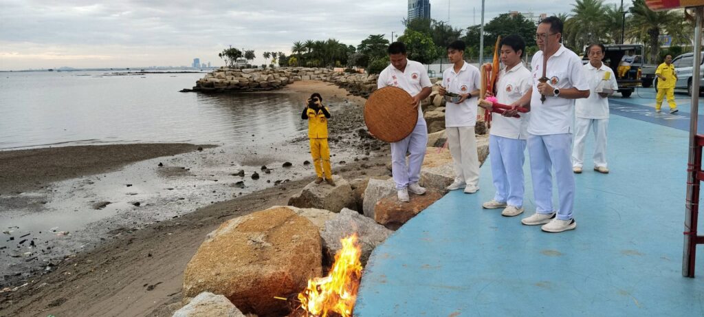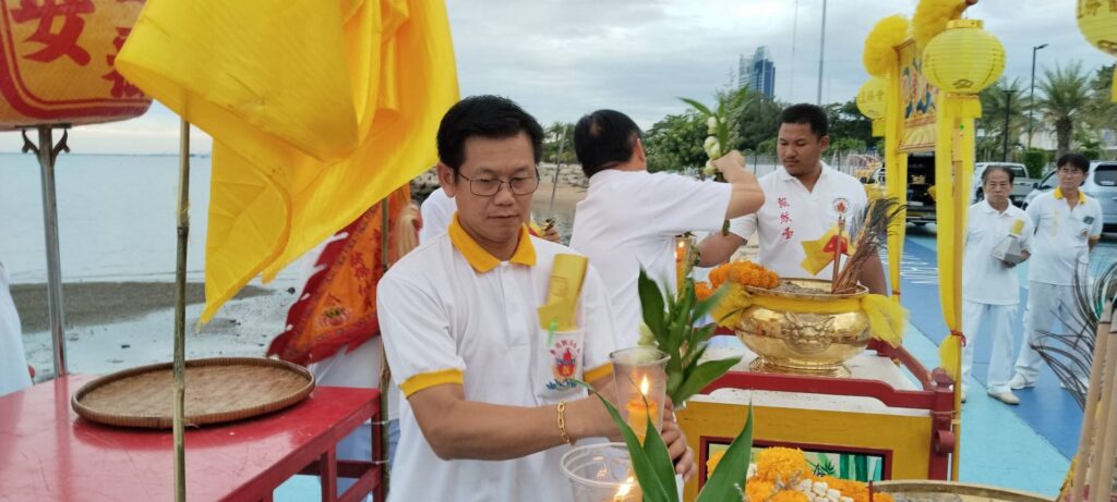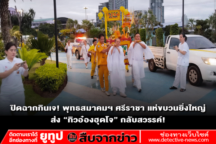 เมื่อเวลา 06.30 น. ของวันที่ 30 ตุลาคม 2568 ณ พุทธสมาคมเพียวเยี้ยงไท้ศรีราชา นายเจริญ จุรีกานนท์ นายกพุทธสมาคมฯ พร้อมด้วยคณะกรรมการ ได้นำขบวนแห่องค์เทพเจ้าและกระถางธูปอย่างสมเกียรติ มุ่งหน้าไปยังบริเวณริมชายทะเลเกาะลอยศรีราชา เพื่อจัดพิธีสำคัญคือ “พิธีส่งเทพเจ้ากิวอ๋องฮุดโจกลับสู่สรวงสวรรค์”