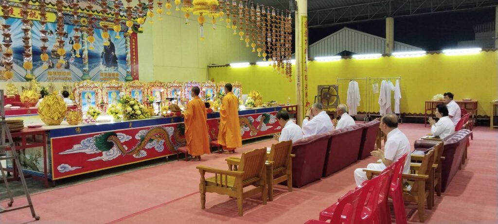 ภายในพิธี พระสงฆ์จีนได้นำประกอบพิธีส่งเสด็จองค์เทพเจ้า ท่ามกลางผู้ถือศีลกินเจที่สวมใส่ชุดขาวมาร่วมพิธีด้วยศรัทธาอย่างเต็มเปี่ยม พร้อมทั้งมีการ ส่งมอบรายชื่อของผู้ที่ถือศีลกินเจ เพื่อนำไปบันทึกไว้บนสวรรค์
