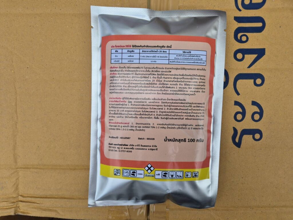 พฤติการณ์ สืบเนื่องจากเจ้าหน้าที่ กก.2 บก.ปคบ. ร่วมกับเจ้าหน้าที่สารวัตรเกษตร สำนักควบคุมพืชและวัสดุการเกษตร เข้าตรวจค้นบ้าน ซอยประเสริฐมนูกิจ 29 เขตลาดพร้าว กรุงเทพมหานคร หลังสืบทราบว่ามีร้านค้าออนไลน์จำหน่าย สารเคมีกำจัดศัตรูพืชปลอมและไม่ได้ขึ้นทะเบียน ผ่านแพลตฟอร์มอีคอมเมิร์ซชื่อดัง ภายในบ้านพบผลิตภัณฑ์สารเคมีกำจัดศัตรูพืช (วัตถุอันตรายทางการเกษตร) รวม 8 รายการ อาทิ พิริมิฟอส, ไดเมโทมอร์ฟ, อะซิเฟต, ลิมซูเฟน และไตรอะโซฟอส รวมมูลค่ากว่า 80,000 บาท จากการตรวจสอบพบว่า เลขทะเบียนและสถานที่ผลิตบนฉลากเป็นของปลอมทั้งหมด