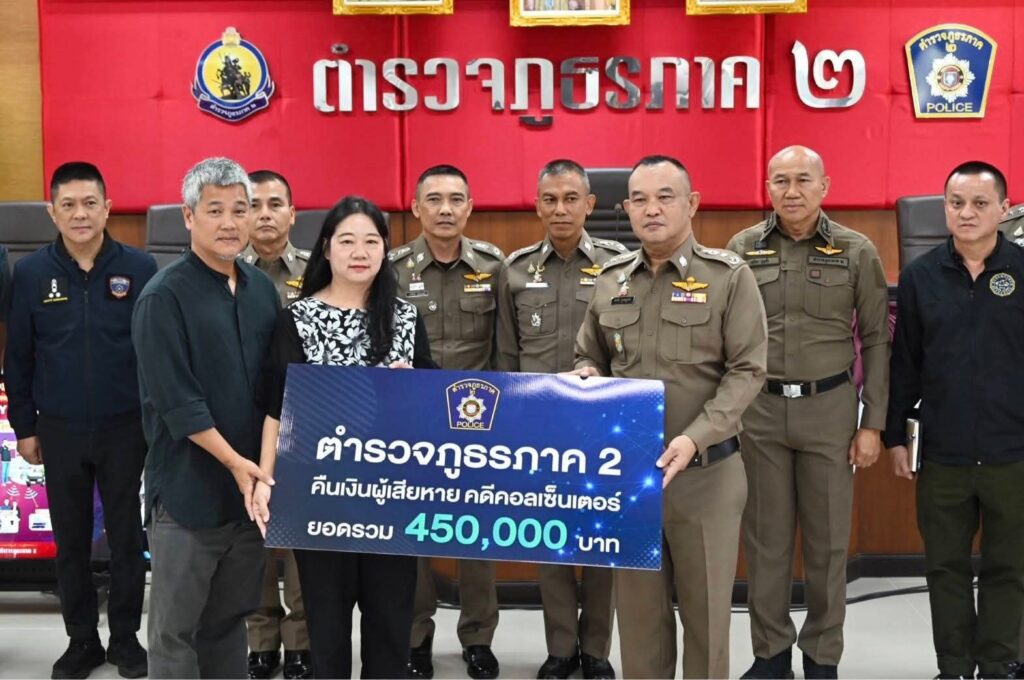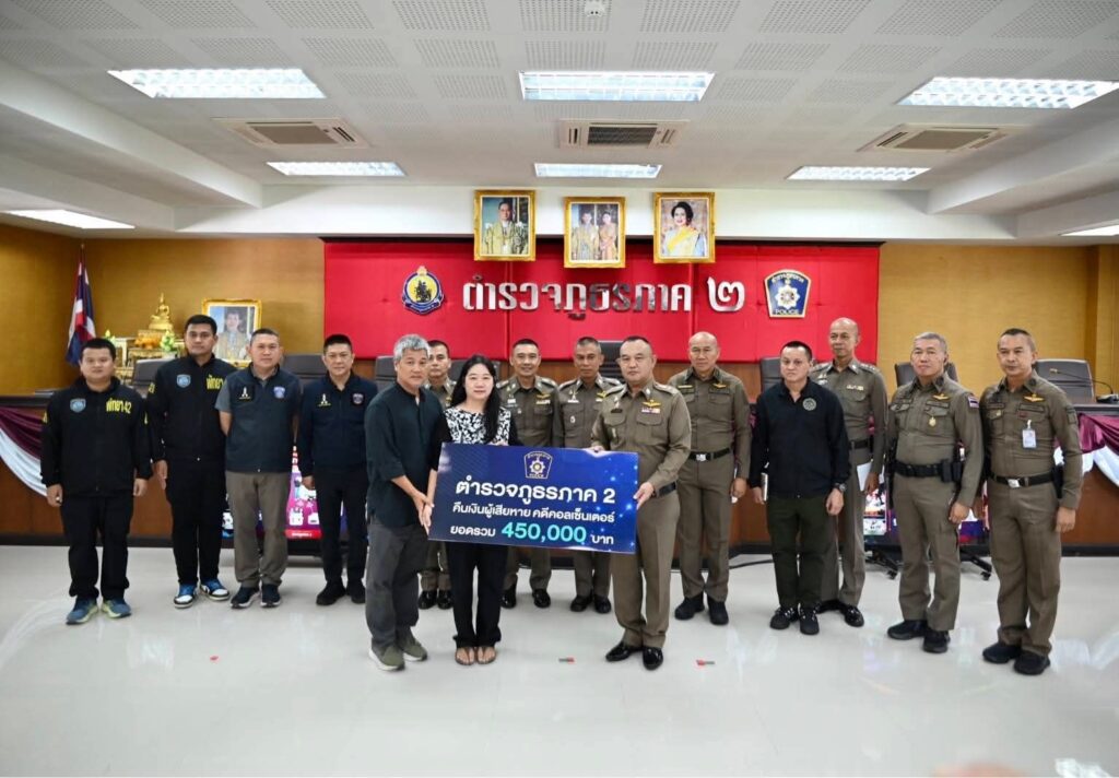ตำรวจสืบพัทยาโชว์ฟอร์ม “คืนเงินเหยื่อคอลเซ็นเตอร์ 4.5 แสน”