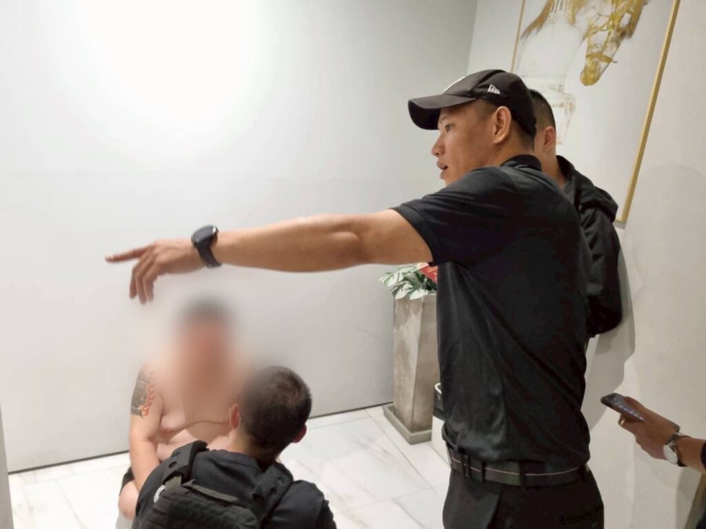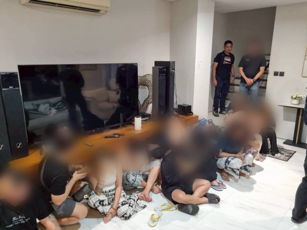 เมื่อเข้าตรวจค้น พบชาวต่างชาติรวม 22 ราย สัญชาติฟิลิปปินส์และสิงคโปร์ พักอาศัยอยู่ภายในบ้านหลังดังกล่าว เจ้าหน้าที่จึงเชิญตัวทั้งหมดมาที่กองบังคับการปราบปรามเพื่อซักถาม ตรวจสอบหนังสือเดินทาง และตรวจประวัติการเข้าออกประเทศ