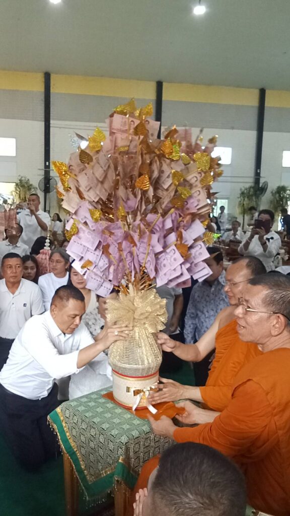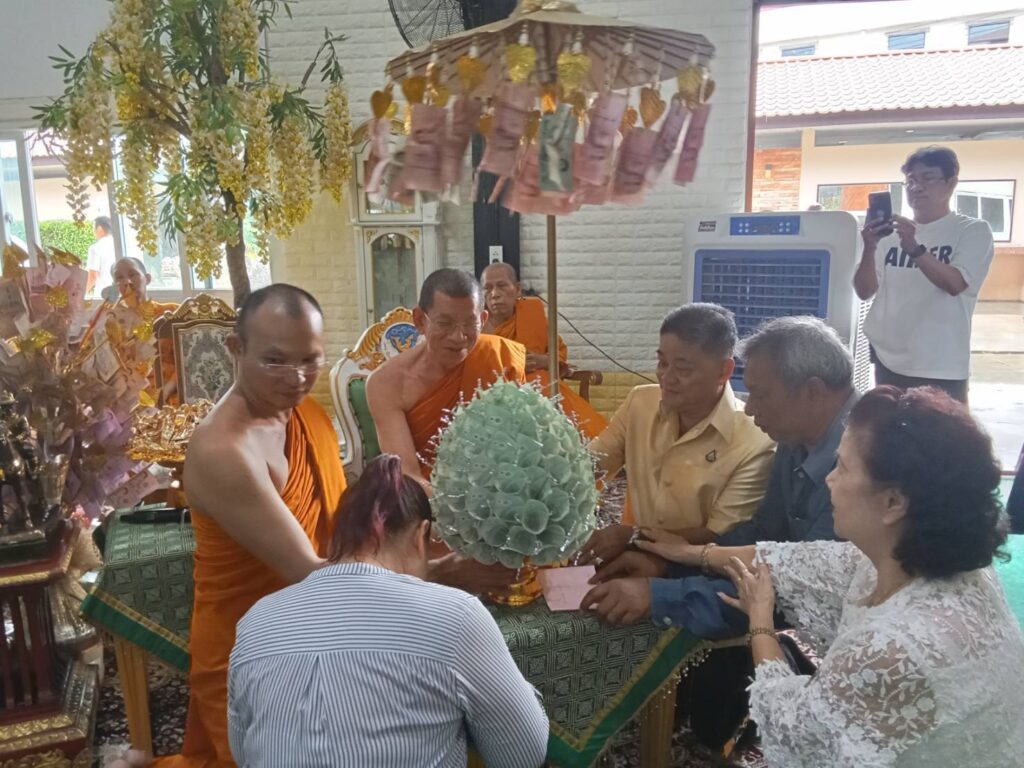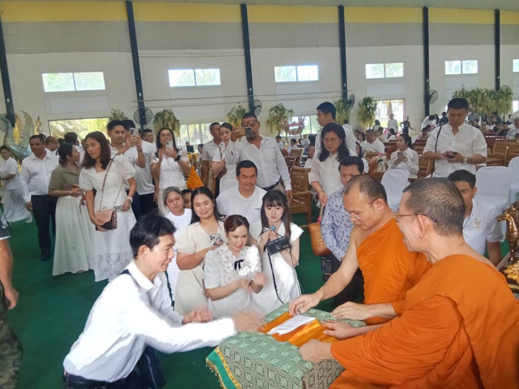ในโอกาสนี้ พลตำรวจโท นพศิลป์ พร้อมครอบครัว ได้ถวายปัจจัยจำนวน 1,299,999 บาท เพื่อสมทบทุนในการบูรณะและพัฒนาสถานธรรม ขณะที่คณะศิษยานุศิษย์บูชาธรรม 81 ปี หลวงพ่อธรรมไชโย ร่วมถวายปัจจัยอีก 100,000 บาท นอกจากนี้ ยังมีคหบดีและผู้มีจิตศรัทธาจากพื้นที่ตำบลบ่อวิน–ตำบลบึง และพื้นที่ใกล้เคียง รวมถึง นายพิสิษฐ์ ประเสริฐพงษ์ สมาชิกสภาองค์การบริหารส่วนจังหวัดชลบุรี, นายชัยนรงค์ ทองศิริ กำนันตำบลบึง และ นางสาวปรียากมล จันทร์ฉาย กำนันตำบลหนองขาม ร่วมเป็นประธานอุปถัมภ์สมทบเงินทำบุญเพิ่มเติม