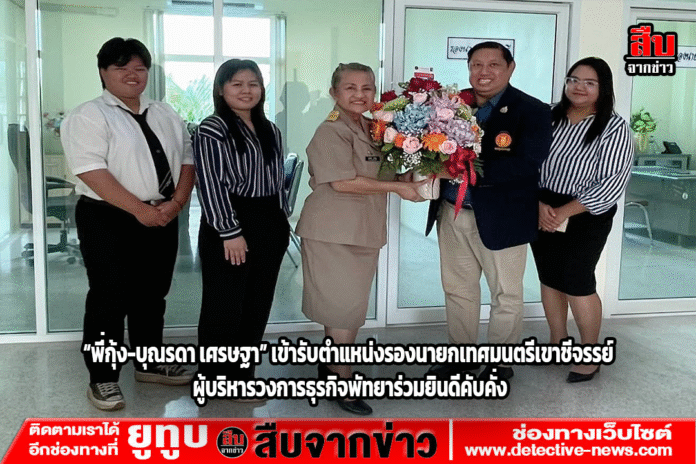 ว่าที่ร้อยตรีชาญยุทธ ยังปรีดา ที่ปรึกษาประธานคณะกรรมาธิการการท่องเที่ยว สภาผู้แทนราษฎร และ นายเอกชัย กาญจนภัทรกุล ที่ปรึกษาคณะกรรมการตรวจสอบและติดตามการบริหารงานตำรวจ (กต.ตร.) สภ.เมืองพัทยา พร้อมคณะ ได้เดินทางเข้าแสดงความยินดีแก่ นางบุณรดา เศรษฐา หรือ “พี่กุ้ง” เจ้าของและผู้บริหาร Happy Hill Restaurant เขาชีจรรย์ และ 3 Mermaids Cafe Pattaya ในโอกาสเข้ารับตำแหน่ง รองนายกเทศมนตรีตำบลเขาชีจรรย์