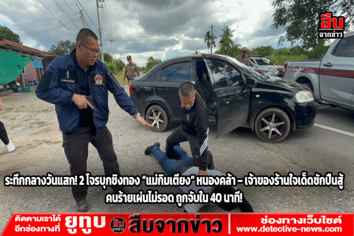 สองคนร้ายบุกพยายามชิงทองร้าน “แม่กิมเตียง” สาขาหนองคล้า จันทบุรี แต่พลาดท่า หลังเจ้าของร้านตั้งสติชักปืนขู่ คนร้ายหนีหัวซุก ก่อนตำรวจระดมกำลังปิดล้อม รวบตัวได้ภายในเวลาไม่ถึงชั่วโมง สารภาพสิ้น วางแผนก่อเหตุเพราะติดหนี้พนัน