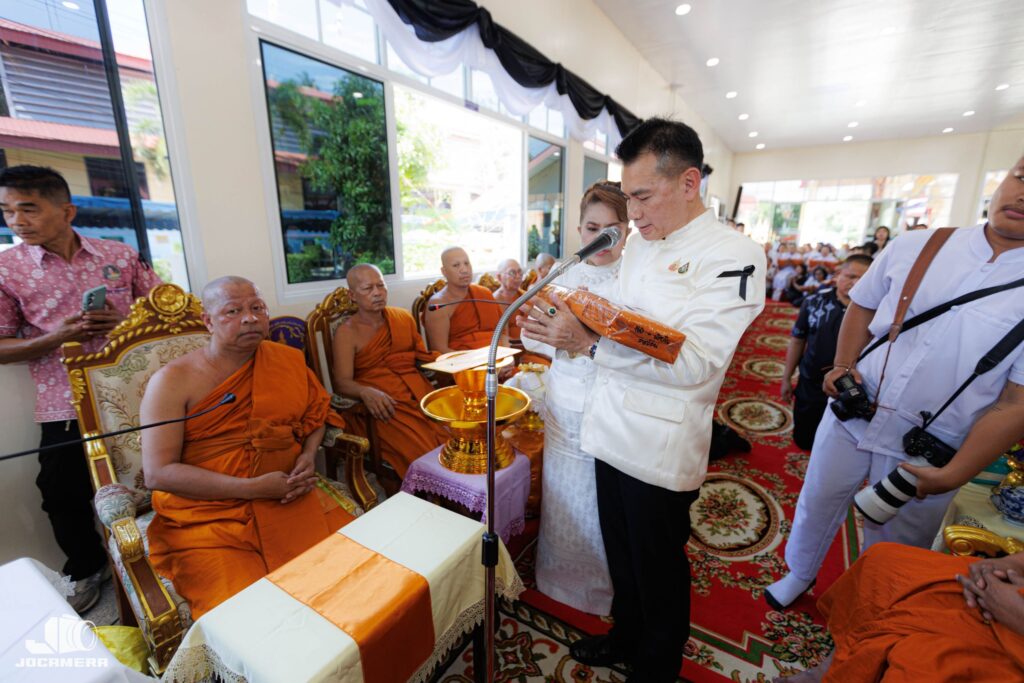 นายพงศ์ธสิษฐ์ ปิจนันท์ รองผู้ว่าราชการจังหวัดชลบุรี พร้อมด้วย นางมนต์พัทธนันท์ ปิจนันท์ ภริยา ได้นำคณะเจ้าภาพและพุทธศาสนิกชนจากทุกสารทิศ อาทิ นายศักดิ์สิทธิ์ ธีระพรสถานนท์ และครอบครัว, นางศิดารัศ รักธรรมสงบ และครอบครัว รวมถึงนางสาวภารดี เผือกโสภา ปลัดอำเภอบางละมุง เข้าร่วมพิธีอย่างพร้อมเพรียง เพื่อสืบสานพระพุทธศาสนาและนำปัจจัยไปใช้ในการบูรณะซ่อมแซมเสนาสนะภายในวัดที่ชำรุดทรุดโทรมอย่างเร่งด่วน