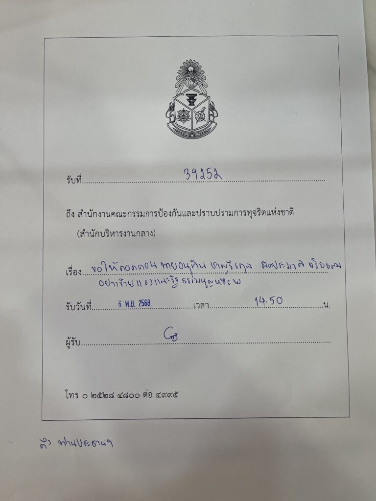 เมื่อวันที่ ๖ พฤศจิกายน ๒๕๖๘ นายวัชระ เพชรทอง อดีต ส.ส.พรรคประชาธิปัตย์ ได้เดินทางเข้ายื่นหนังสือร้องเรียนต่อ นายสุชาติ ตระกูลเกษมสุข ประธาน ป.ป.ช. เพื่อขอให้ดำเนินการสอบสวนและถอดถอน นายอนุทิน ชาญวีรกูล นายกรัฐมนตรีและรัฐมนตรีว่าการกระทรวงมหาดไทย ออกจากตำแหน่งโดยเร็วที่สุด