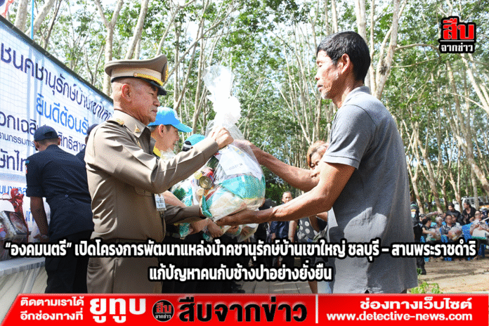 วันนี้ (6 พฤศจิกายน 2568) เวลา 09.30 น. ที่ ชุมชนคชานุรักษ์บ้านเขาใหญ่ หมู่ 4 ตำบลพลวงทอง อำเภอบ่อทอง จังหวัดชลบุรี พลเอก เฉลิมชัย สิทธิสาท องคมนตรี และประธานกรรมการบริหารมูลนิธิพัชรสุธาคชานุรักษ์ ในพระบรมราชูปถัมภ์ เป็นประธานเปิด “โครงการพัฒนาแหล่งน้ำในชุมชนคชานุรักษ์บ้านเขาใหญ่” เพื่อเสริมสร้างความมั่นคงด้านน้ำแก่ประชาชน พร้อมฟื้นฟูระบบนิเวศให้เกิดความสมดุลระหว่างคนกับช้างป่า