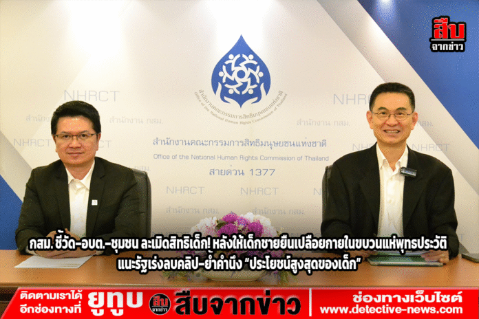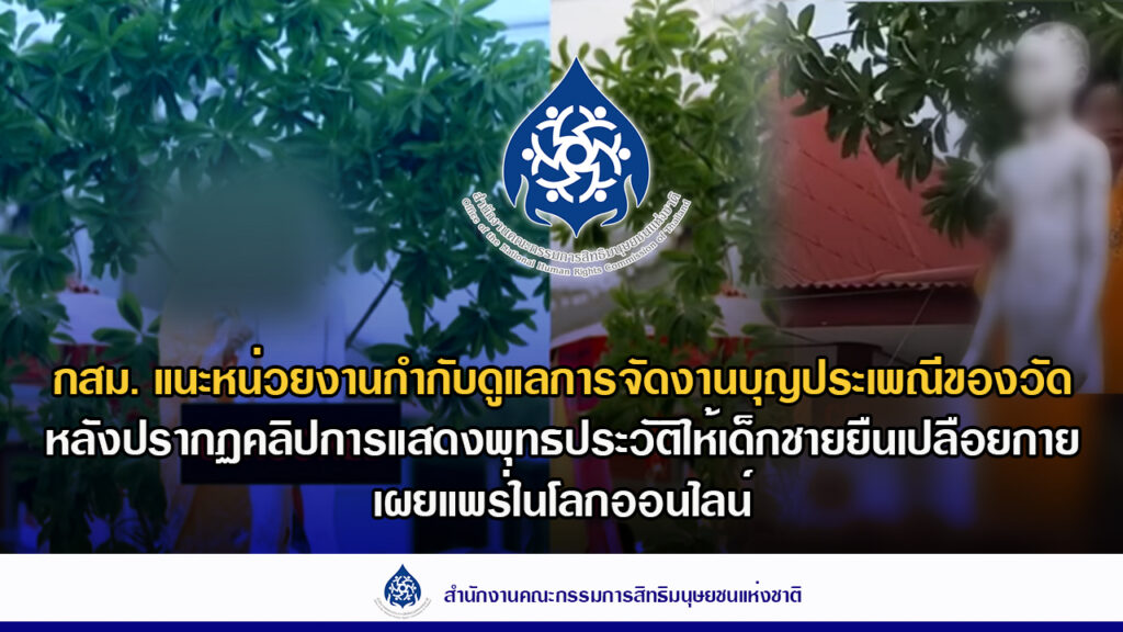 กสม. แถลงกรณีคลิปเด็กชายยืนเปลือยกายในขบวนแห่พุทธประวัติ งานบุญ “132 ปี อัฏฐมีบูชา” จ.นครปฐม เข้าข่ายละเมิดสิทธิมนุษยชนและสิทธิเด็ก ชี้หน่วยงานรัฐ–วัด–ชุมชน ละเลยหน้าที่ แนะกำหนดแนวทางจัดงานวัดทั่วประเทศให้เหมาะสม พร้อมเร่งลบคลิปออนไลน์ป้องกันกระทบสวัสดิภาพเด็ก