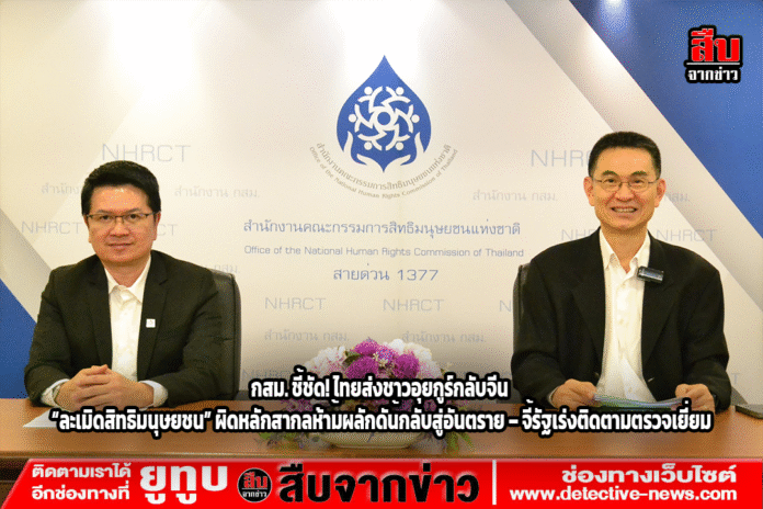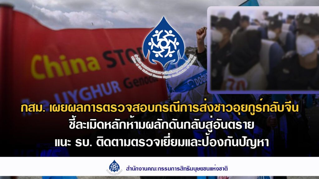 กสม. แฉรัฐบาลไทย–สภาความมั่นคงแห่งชาติ–สตม. ส่งชาวอุยกูร์ 40 คนกลับจีน ทั้งที่มีหลักฐานชัดเจนเสี่ยงถูกทรมานและสูญหาย เข้าข่ายละเมิดสิทธิมนุษยชน-ขัดกฎหมายห้ามผลักดันกลับ (non-refoulement) จี้เร่งตรวจเยี่ยมความปลอดภัย–เปิดเผยข้อมูลต่อสาธารณะ