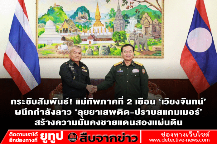 พลโท วีระยุทธ รักศิลป์ แม่ทัพภาคที่ ๒ และคณะ เดินทางเยือนสาธารณรัฐประชาธิปไตยประชาชนลาวอย่างเป็นทางการ เข้าพบรองหัวหน้ากรมใหญ่เสนาธิการกองทัพประชาชนลาว เพื่อหารือเชิงลึกและประสานความร่วมมือในการแก้ไขปัญหาความมั่นคงชายแดน ทั้งปัญหายาเสพติด การลักลอบเข้าเมือง และภัยคุกคามรูปแบบใหม่ โดยทั้งสองฝ่ายยืนยันสานต่อมิตรภาพ ยกระดับการป้องกัน และพัฒนาคุณภาพชีวิตของประชาชนตลอดแนวชายแดนร่วมกัน