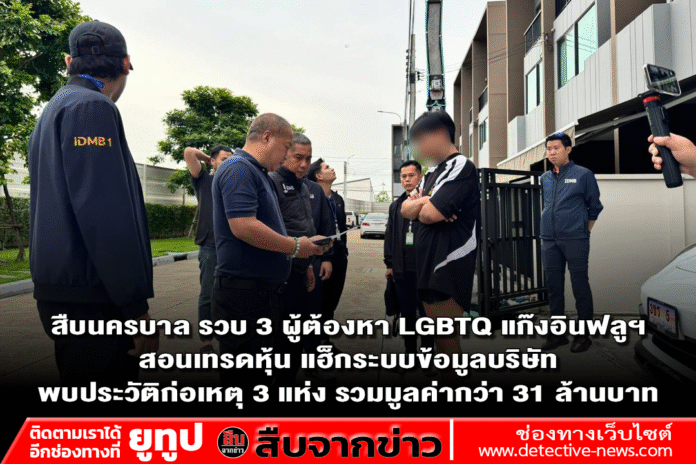 กองบังคับการสืบสวนสอบสวน กองบัญชาการตำรวจนครบาล (บก.สส.บช.น.) พล.ต.ต.โชติวัฒน์ เหลืองวิลัย ผบก.สส.บช.น. พ.ต.อ.อรรชวศิษฏ์ ศรีบุณยมานนทน์ ผกก.สืบสวน 3 บก.สส.บช.น. พ.ต.อ.เชิดศักดิ์ รอดเข็ม ผกก.สส.บก.น.6 พร้อมกำลังเจ้าหน้าที่ บก.สส.บช.น., สืบสวน บก.น.6 ร่วมกันแถลงผลจับกุมตัว ผู้ต้องหา 3 ราย ประกอบด้วย 1.นายคชา (สงวนนามสกุล)อายุ 25 ปี 2. นายนัธทวัฒน์ (สงวนนามสกุล)อายุ 29 ปี และ 3.นายอานุวัฒน์ (สงวนนามสกุล)อายุ 25 ปี ทั้งสามเป็นกลุ่ม LGBTQ พร้อมของกลาง โทรศัพท์มือถือ iPhone จำนวน 6 เครื่อง,อุปกรณ์คอมพิวเตอร์, รองเท้า-กระเป๋า แบรนด์เนมจำนวนมาก และ ตุ๊กตาอาร์ตทอย ขนาดใหญ่ 1 ตัว มูลค่ากว่า 4 หมื่นบาท, เครื่องปริ้นท์ 1 เครื่อง ผู้ต้องหาตามหมายจับศาลอาญากรุงเทพใต้ ที่ 1104-1105-1088 (ตามลำดับ) ลงวันที่ 6 พ.ย.68