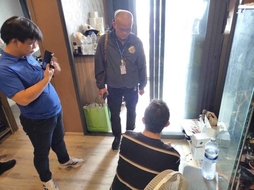 เจ้าหน้าที่เข้าจับกุมได้ภายในคอนโดย่านวงศ์สว่าง หลังได้รับแจ้งจาก น.ส.อริญรดา (สงวนนามสกุล) ซึ่งถูกผู้ต้องหาว่าจ้างให้มา “เอ็นเตอร์เทน” ภายในห้องพัก และจ่ายค่าจ้างเป็นธนบัตรยูโร 3 ใบ มูลค่า 300 ยูโร ก่อนนำไปแลกเงินไทยแล้วพบว่าเป็น “แบงก์ปลอม”