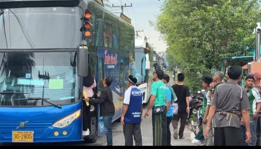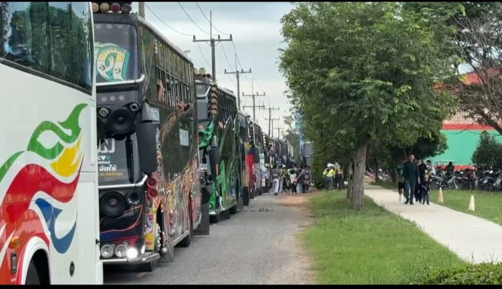 บรรยากาศช่วงเช้าของวันที่ ๘ พฤศจิกายน ๒๕๖๘ ณ บริเวณหน้าโรงเรียนหมอนทองวิทยา ตำบลหมอนทอง อำเภอบางน้ำเปรี้ยว จังหวัดฉะเชิงเทรา คึกคักราวกับเป็นวันรวมญาติครั้งประวัติศาสตร์ ประชาชนจากในพื้นที่และตำบลใกล้เคียงต่างหลั่งไหลมารวมตัวกัน เพื่อขึ้นรถบัสที่จัดเตรียมไว้เฉพาะจุดนี้ถึง ๕๐ คัน ก่อนจะสมทบกับรถบัสจากอำเภออื่น ๆ ในจังหวัดอีกประมาณ ๒๐ คัน และกลุ่มรถตู้อีกกว่า ๖๐ คัน รวมเป็นกองทัพรถเชียร์ขนาดใหญ่กว่า ๑๓๐ คัน ที่มีปลายทางเดียวกัน คือ สนามศุภชลาศัย กรุงเทพมหานคร