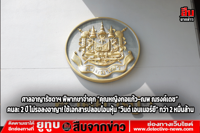 ศาลอาญารัชดาฯ พลิกคำพิพากษา สั่งจำคุก “คุณหญิงกอแก้ว บุญยะจินดา” และ “ณพ ณรงค์เดช” คนละ 2 ปี ไม่รอลงอาญา หลังศาลอุทธรณ์ชี้ชัด ใช้เอกสารลายเซ็นปลอมของ “นายเกษม ณรงค์เดช” ผู้เป็นบิดา โอนหุ้นบริษัท วินด์ เอนเนอร์ยี โฮลดิ้ง มูลค่ากว่า 20,000 ล้านบาท — “กรณ์ ณรงค์เดช” เผยทั้งน้ำตา ขอบคุณศาลที่คืนความเป็นธรรมให้ครอบครัว