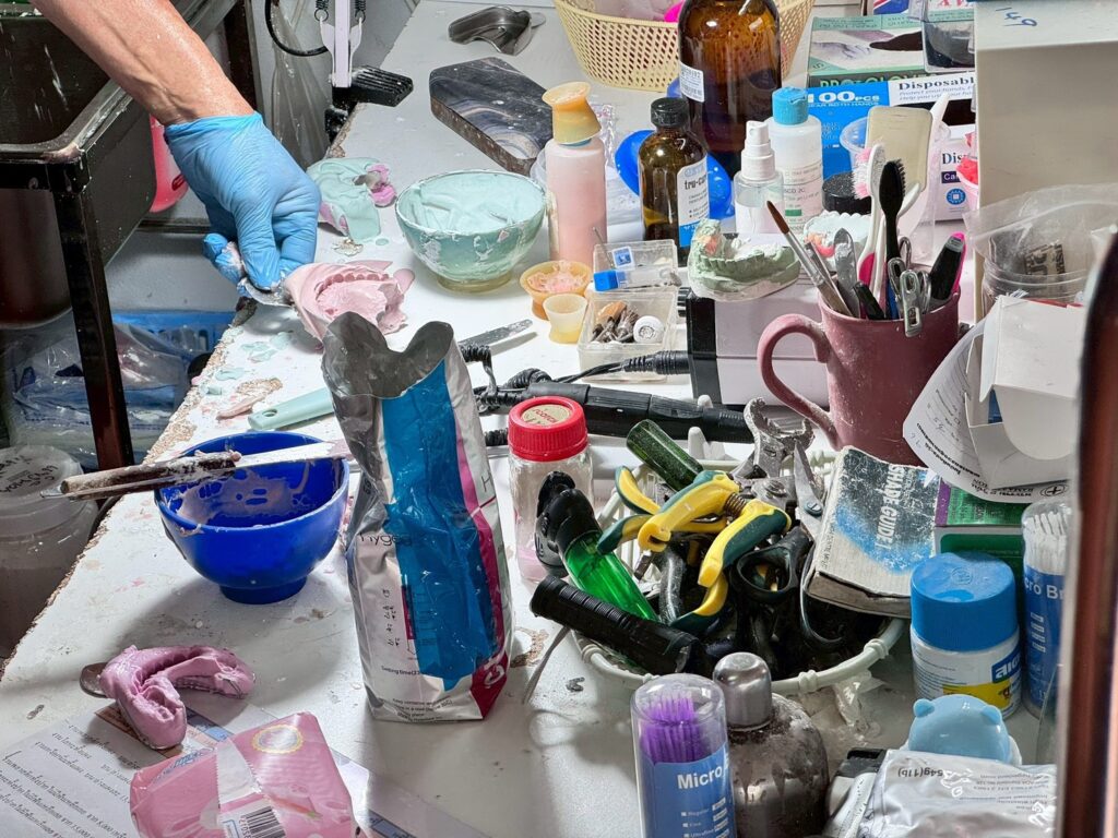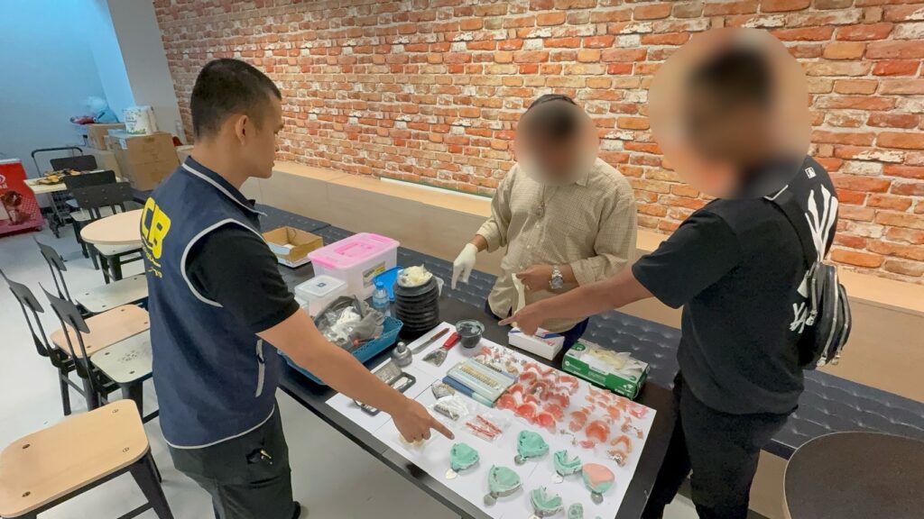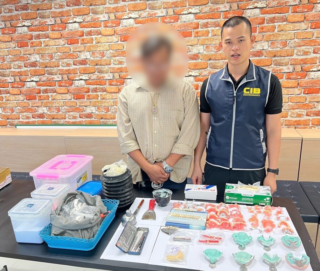 4. ร้าน “สมศักดิ์ เทคนิคทำฟัน” ในพื้นที่แขวงอนุสาวรีย์ เขตบางเขน เมื่อวันที่ 11 พฤศจิกายน 2568 จับกุมตัว นายสมศักดิ์ (สงวนนามสกุล) อายุ 64 ปี พร้อมของกลาง อุปกรณ์ทำฟันปลอมรวม 13 รายการ จำนวน 179 ชิ้น ดำเนินคดีในข้อหา “ประกอบวิชาชีพทันตกรรมโดยไม่ขึ้นทะเบียนและรับใบอนุญาต” โดยผู้ต้องหารายนี้เคยเป็นผู้ช่วยหมอฟันมาก่อนหน้านี้ และมาเปิดสถานที่รับทำฟันปลอมในลักษณะเป็นแผงลอย ย้ายสถานที่ไปเรื่อย ๆ เพื่อหลบเลี่ยงการตรวจสอบของเจ้าหน้าที่ รับทำฟันปลอมคิดค่าบริการราคาซี่ละ 200 บาท ทั้งปาก 3,000 บาท มีลูกค้าวันละประมาณ 3-4 ราย ทำมาแล้วประมาณ 3-4 ปี