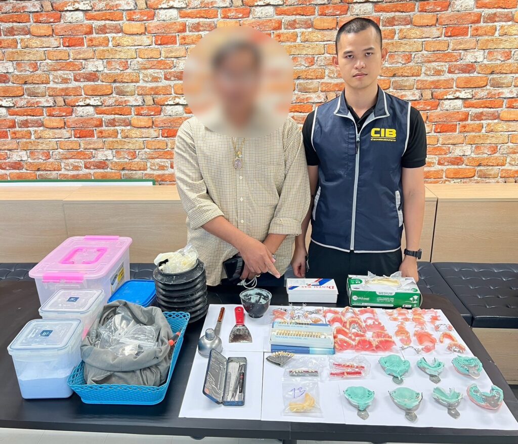 2. บริเวณตลาดสดย่านอนุสาวรีย์ชัยสมรภูมิ แขวงพญาไท เขตพญาไท กรุงเทพมหานคร เมื่อวันที่ 6 พฤศจิกายน 2568 จับกุมตัว นายเจษฎาภรณ์ (สงวนนามสกุล) อายุ 53 ปี พร้อมด้วยของกลาง เบ้าเหล็กพิมพ์ฟัน, ฟันปลอมสำเร็จ และอุปกรณ์ทำฟันอื่น ๆ รวม 10 รายการ จำนวน 103 ชิ้น ดำเนินคดีในข้อหา “ประกอบวิชาชีพทันตกรรมโดยไม่ขึ้นทะเบียนและรับใบอนุญาต” โดยผู้ต้องหารายนี้ ใช้ช่องทาง TikTok และ Facebook ชื่อ “เล็ก ทำฟันปลอม” ให้บริการรับทำฟันปลอมให้บุคคลทั่วไป โดยรับว่าเคยเป็นลูกจ้างทำฟันปลอมในแล็บทำฟันมาก่อน และอาศัยครูพักลักจำมาทำฟันปลอมหารายได้จากการตกงานในช่วงโควิดที่ผ่านมา โดยใช้วิธีนัดหมายไปให้บริการแก่ผู้สนใจนอกสถานที่เพื่ออำนวยความสะดวกแก่ลูกค้าและหลบเลี่ยงการตรวจสอบของเจ้าหน้าที่ ตามบริเวณจุดนัดต่าง ๆ เช่น ตลาด ริมทางข้างถนน โดยทำมาแล้วประมาณ 6 ปี