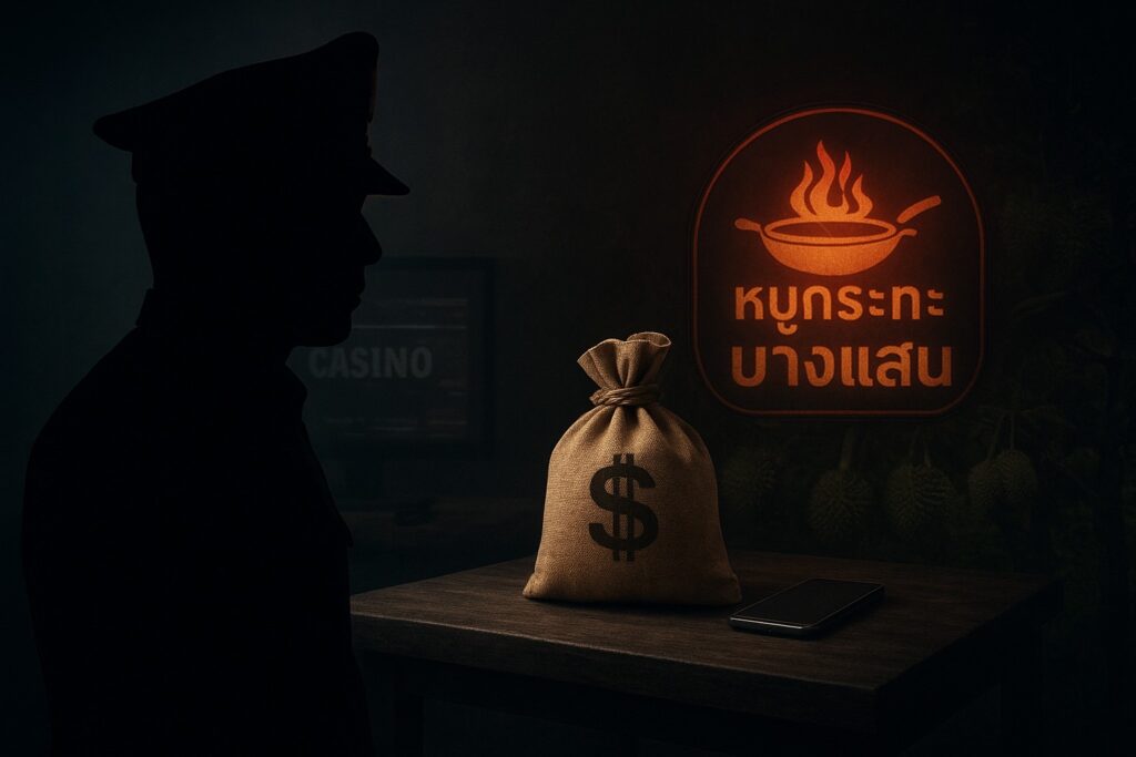 ทีมข่าวสืบสวนภาคตะวันออกเปิดโปงเครือข่ายอาชญากรในเครื่องแบบ ใช้ร้านหมูกระทะชื่อดังกลางบางแสนเป็นศูนย์บัญชาการลับ เคลียร์ผลประโยชน์ให้บ่อน–เว็บพนันข้ามจังหวัด เงินหมุนหลักล้านต่อเดือน ถูกฟอกผ่านสวนทุเรียนหรูบังหน้า