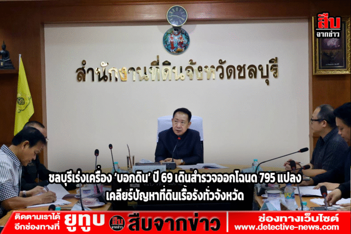 จังหวัดชลบุรีเปิดแผนใหญ่ “บอกดิน ปี 69” เดินสำรวจออกโฉนดกว่า 795 แปลง ต่อยอดข้อมูล 3 เฟสโครงการบอกดิน พร้อมคัดกรองพื้นที่เข้ม ปลดล็อกปัญหาที่ดินค้างสะสม ช่วยประชาชนมีเอกสารสิทธิชัดเจน เดินหน้าแก้ปัญหาความเดือดร้อนให้เป็นรูปธรรม