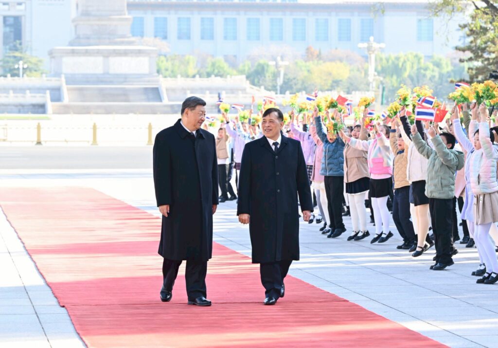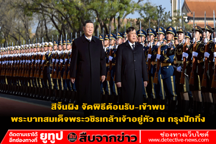 วันศุกร์ (14 พ.ย.) สีจิ้นผิง ประธานาธิบดีจีน ได้จัดพิธีต้อนรับ พระบาทสมเด็จพระวชิรเกล้าเจ้าอยู่หัว ซึ่งเสด็จพระราชดำเนินเยือนสาธารณรัฐประชาชนจีนอย่างเป็นทางการ ต่อจากนั้น สีจิ้นผิง พร้อมด้วย เผิงลี่หยวน ผู้เป็นภริยา ได้พบปะหารือกับ พระบาทสมเด็จพระวชิรเกล้าเจ้าอยู่หัว และ สมเด็จพระนางเจ้าสุทิดาฯ พระบรมราชินี ณ อาคารมหาศาลาประชาชนในกรุงปักกิ่ง