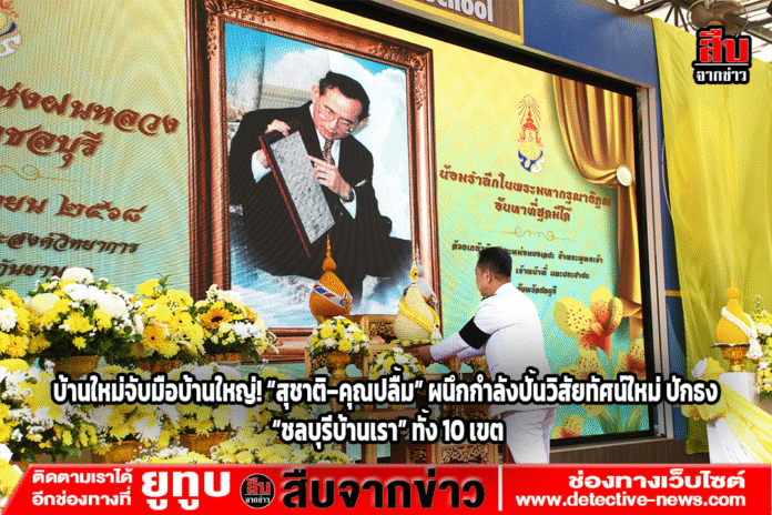 การเมืองชลบุรีขยับแรง เมื่อ “รองเฮ้ง” สุชาติ ชมกลิ่น รองนายกรัฐมนตรี ประกาศร่วมงานกับ “บ้านใหญ่คุณปลื้ม” อย่างเป็นทางการ ภายใต้ชายคาพรรคภูมิใจไทย เดินหน้าผสานพลังสองขั้วใหญ่ ดูแลครบ 10 เขตเลือกตั้ง ตั้งเป้าปักหมุดอนาคต “ชลบุรีบ้านเรา” เมืองเศรษฐกิจยุคใหม่ของภาคตะวันออก