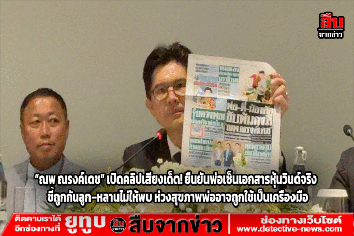 ณพ ณรงค์เดช เปิดหลักฐานชิ้นสำคัญกลางเวทีแถลงข่าว เผยคลิปเสียง ดร.เกษม ยอมรับเซ็นเอกสารหุ้นวินด์ด้วยตนเอง สวนกลับทุกข้อกล่าวหาเรื่องปลอมเอกสาร พร้อมระบุทั้งตนและลูกถูกกีดกันไม่ให้พบคุณพ่อมานานจนกังวลหนัก หลังทราบอาการป่วยและปัญหาด้านความจำ ชี้หวั่นถูกนำไปใช้แสวงประโยชน์ในคดีการเงินมูลค่าสูง