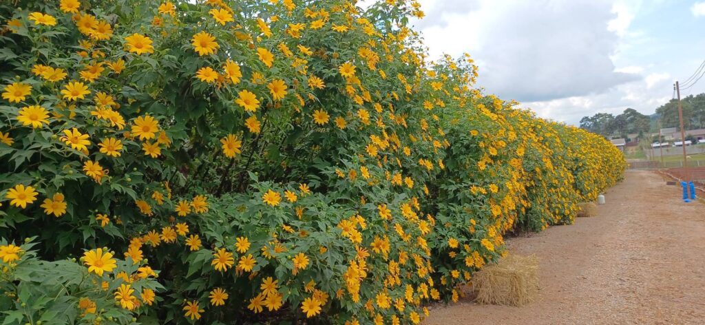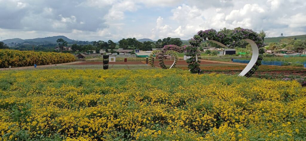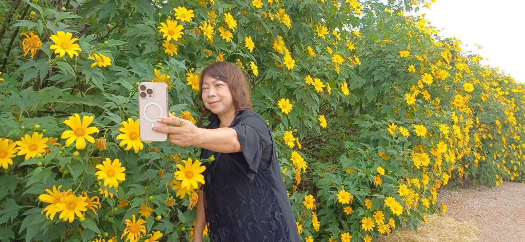 นอกจากนี้ ยังมีไฮไลต์สุดโรแมนติกอย่าง “หัวใจดอกไม้ยักษ์” ที่จัดแต่งจากดอกพิทูเนียหลากสี รวมถึงโซนดอกเก๊กฮวยและบัวตองที่ถือเป็นเอกลักษณ์ประจำสวน