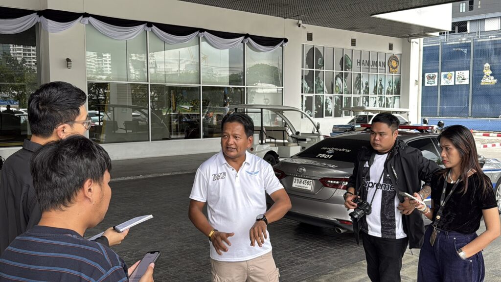 นายเบิร์ด ตัวแทนศูนย์ประสานช่วยเหลือคนไทยในต่างแดน (IMF) พาเหยื่อผู้รอดชีวิตจากการถูกหลอกไปทำงานในแก๊งสแกมเมอร์ฝั่งประเทศกัมพูชา เข้าพบ พล.ต.ท.จิรภพ ภูริเดช ผู้ช่วย ผบ.ตร. ในฐานะรองผู้อำนวยการศูนย์ต่อต้านการฉ้อโกงออนไลน์ (ศปอส.ตร.) เพื่อให้ข้อมูลเชิงลึกเกี่ยวกับเครือข่ายขบวนการดังกล่าว