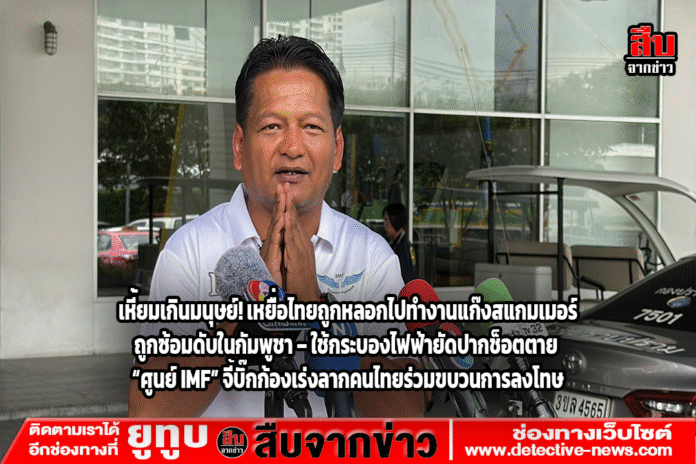 ศูนย์ประสานช่วยเหลือคนไทยในต่างแดน (IMF) พาเหยื่อที่รอดชีวิตจากขุมนรกแก๊งสแกมเมอร์ในกัมพูชา เข้าพบ “บิ๊กก้อง” พล.ต.ท.จิรภพ ภูริเดช รอง ผบ.ตร. เพื่อให้ข้อมูลเชิงลึกและเรียกร้องให้เอาผิดคนไทยที่ร่วมขบวนการซ้อมทรมานเพื่อนร่วมชาติ เผย “น้องโตโต้” เหยื่อรายล่าสุดถูกซ้อมโหด ใช้กระบองไฟฟ้ายัดปากจนช็อตดับอนาถ เชื่อมีเหยื่อเสียชีวิตจริงอีกหลายรายที่ยังไม่มีใครรับรู้