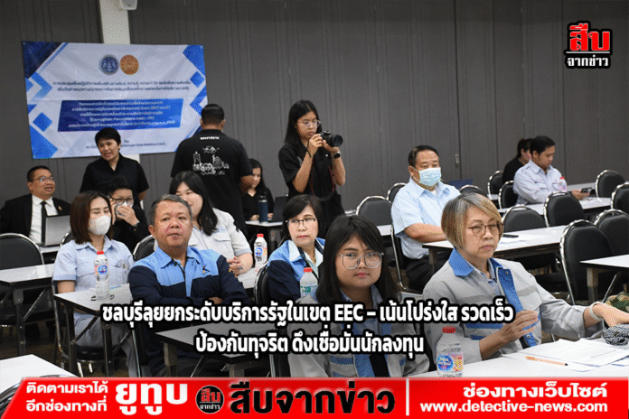 จังหวัดชลบุรีเดินหน้ายกระดับการให้บริการภาครัฐในพื้นที่เขตพัฒนาพิเศษภาคตะวันออก (EEC) จัดประชุมเชิงปฏิบัติการร่วมภาครัฐ–เอกชน ชูแนวคิด “โปร่งใส ตรวจสอบได้” ลดขั้นตอนราชการ สร้างระบบบริการรวดเร็ว พร้อมขับเคลื่อนนโยบายป้องกันการทุจริตอย่างยั่งยืน
