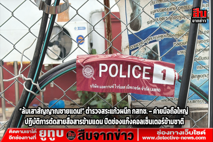 ตำรวจภูธรจังหวัดสระแก้วเปิดยุทธการ “ล้มเสาสัญญาณชายแดน” ร่วมมือ กสทช. และผู้ให้บริการโทรคมนาคมรายใหญ่ ไล่ตัดสายสื่อสารที่เชื่อมต่อข้ามแดนกัมพูชา 3 จุดสำคัญ หวังสกัดแก๊งคอลเซ็นเตอร์–สแกมเมอร์ข้ามชาติ ปิดช่องสื่อสารผ่านระบบ “Sim Box” ตามนโยบายเด็ดขาดของรัฐบาลและสำนักงานตำรวจแห่งชาติ