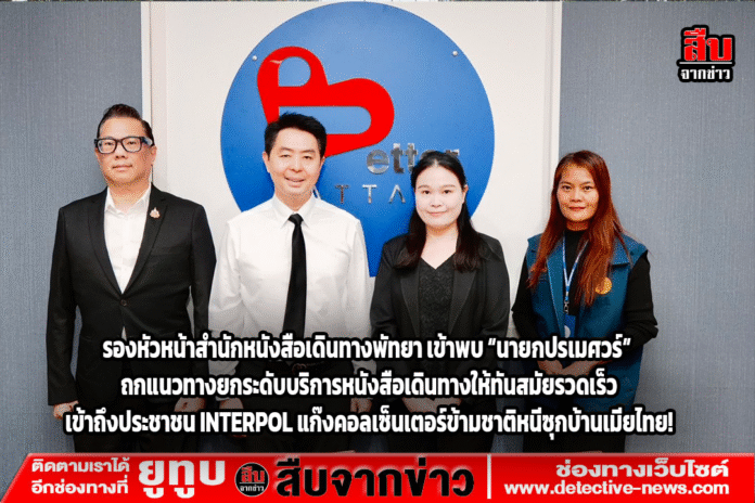 การพบปะครั้งนี้มีเป้าหมายเพื่อหารือแนวทาง พัฒนาคุณภาพการให้บริการหนังสือเดินทาง สำหรับประชาชนในเขตเมืองพัทยา โดยมุ่งเน้นการลดขั้นตอน ลดระยะเวลาการรอคอย และเพิ่มประสิทธิภาพในการให้บริการประชาชนให้รวดเร็วและสะดวกยิ่งขึ้น