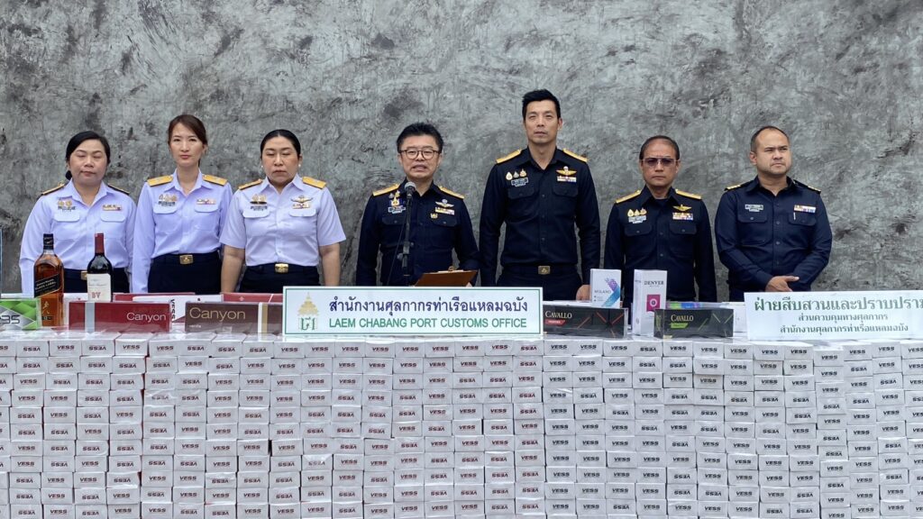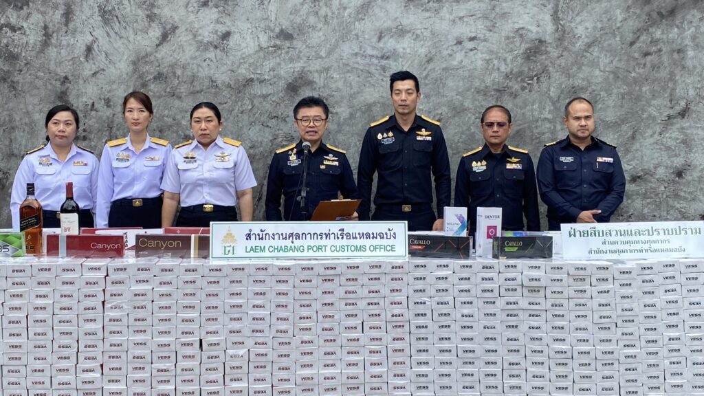 ศุลกากรท่าเรือแหลมฉบังสนธิกำลังฝ่ายสืบสวน–ไปรษณีย์ศรีราชา ตรวจยึด “บุหรี่–สุราต่างประเทศ” หนีภาษีล็อตใหญ่รวมกว่า 800 กล่อง มูลค่ากว่า 4.2 ล้านบาท หลังสืบพบใช้ช่องทางพัสดุไปรษณีย์ภายในประเทศลักลอบส่งของผิดกฎหมาย เตรียมดำเนินคดีผู้เกี่ยวข้องตาม พ.ร.บ.ศุลกากร พ.ศ.2560 อย่างเข้มงวด